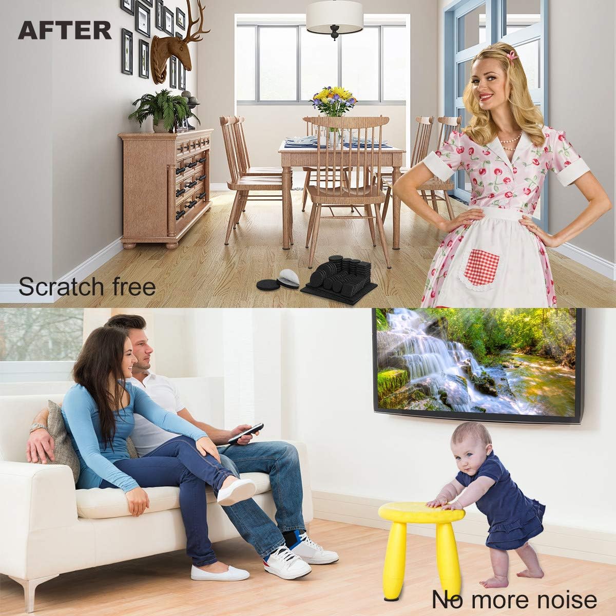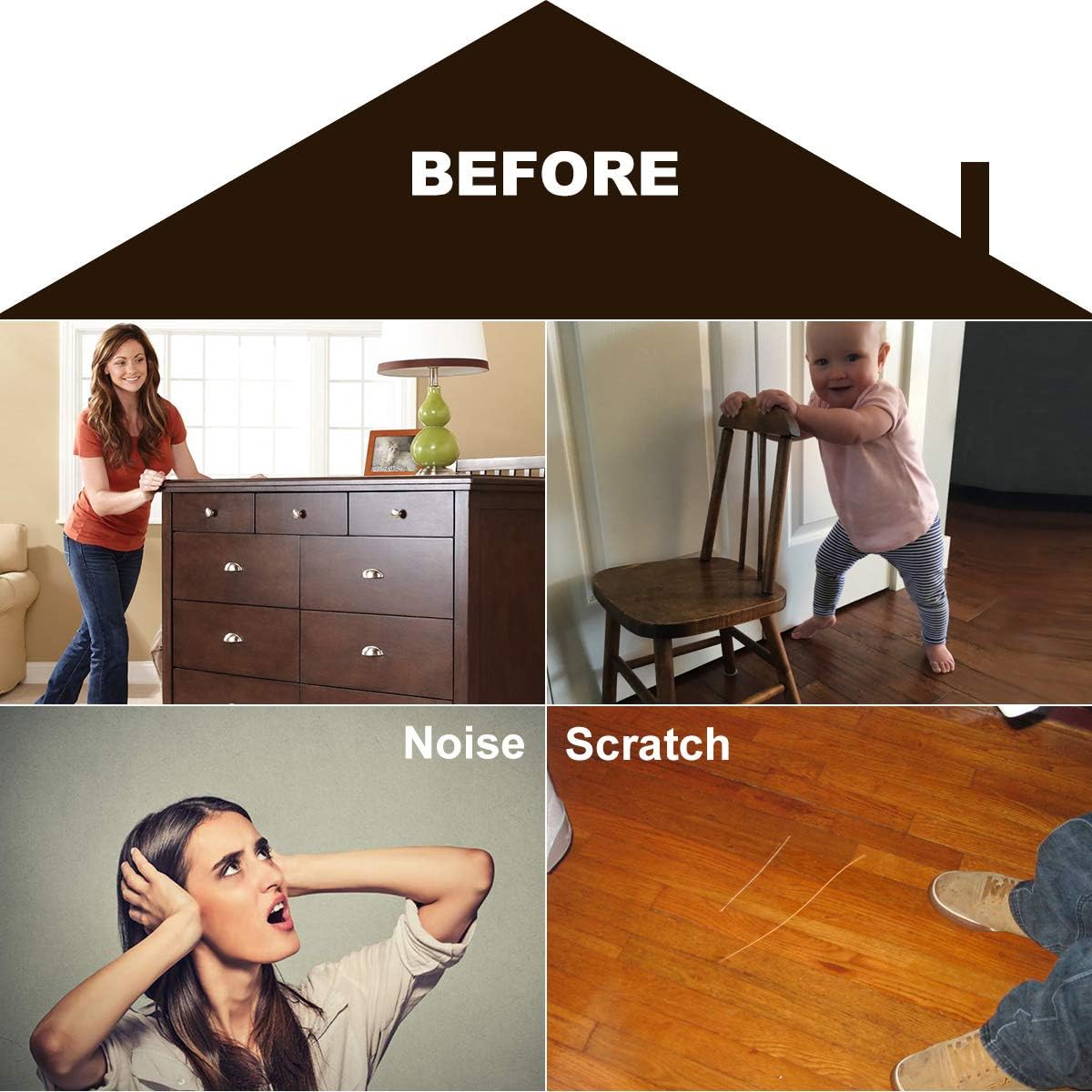 - ❤STOP SCRATCHING YOUR FLOORS❤ Place our felt furniture pads on the legs of your furniture to avoid scratching or scuffing your beautiful wooden, laminate or tiled floors. And you never have to hear that annoying scraping noise again. Protect the value and beauty of all floors with durable yet soft furniture pads on the feet of all furniture, including beds, desks, tables, chairs, sofas, electrical appliances, and cabinets.
