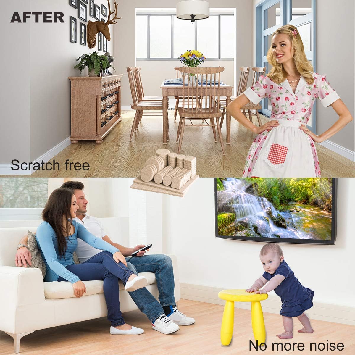 - ❤STOP SCRATCHING YOUR FLOORS❤ Place our felt furniture pads on the legs of your furniture to avoid scratching or scuffing your beautiful wooden, laminate or tiled floors. And you never have to hear that annoying scraping noise again. Protect the value and beauty of all floors with durable yet soft furniture pads on the feet of all furniture, including beds, desks, tables, chairs, sofas, electrical appliances, and cabinets.