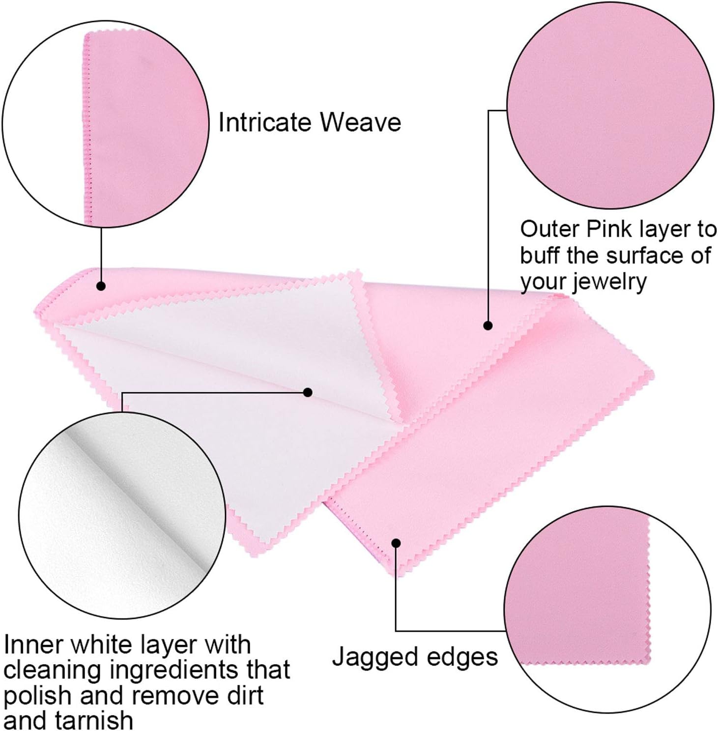 SEVENWELL Silver Polishing Cloth, Jewelry Cleaner Cloth for Sterling Silver Jewelry, Gold, Platinum, Silverware, Diamonds, Gemstones, Coins (Pink)