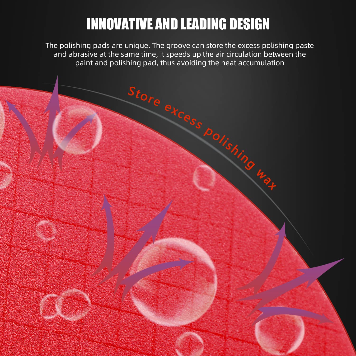 • [Innovative design] The groove can store excess polishing paste and abrasives; at the same time, it speeds up the air circulation between the paint and the polishing pad and avoids the accumulation of heat;