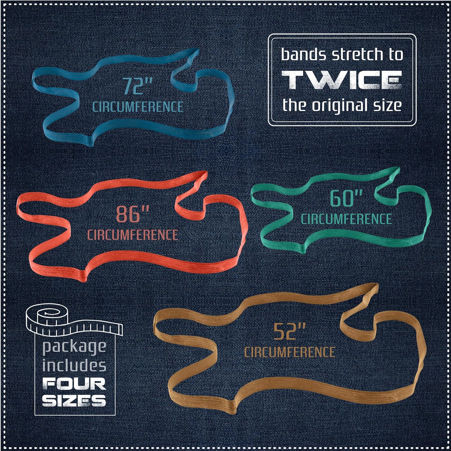 kitchentoolz 48 Pack Mover Bands – Extra Large Rubber Bands for Furniture & Moving Blankets – Heavy-Duty Stretch Bands in 4 Sizes (25", 30", 36", 42") – Secure Drawers, Doors & Covers During Moving & Storage