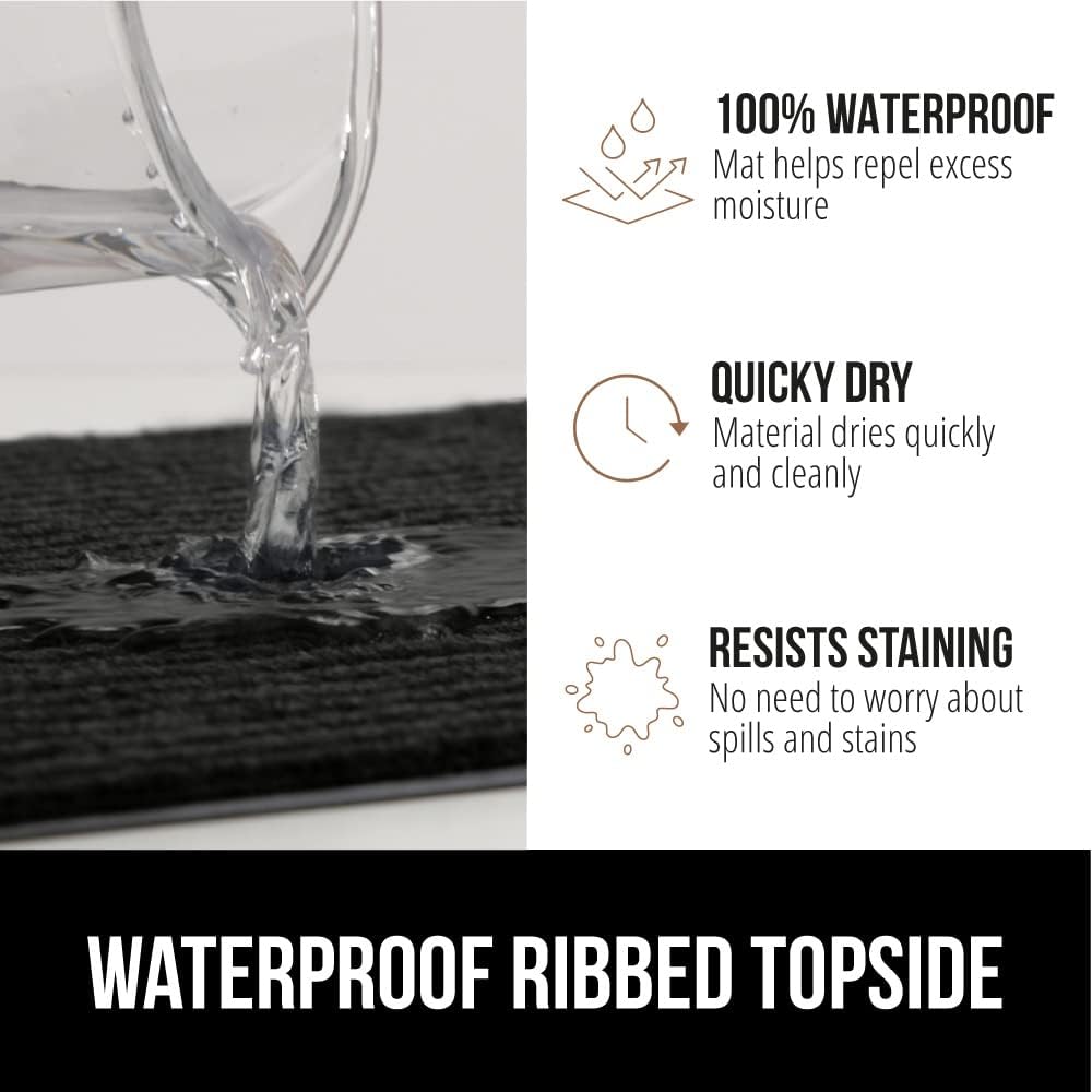 • WATERPROOF RIBBED TOPSIDE: ultra absorbent and 100% waterproof, the mat's surface helps to capture excess water and moisture; plus, premium fabric dries quickly and resists staining and fading for long lasting use