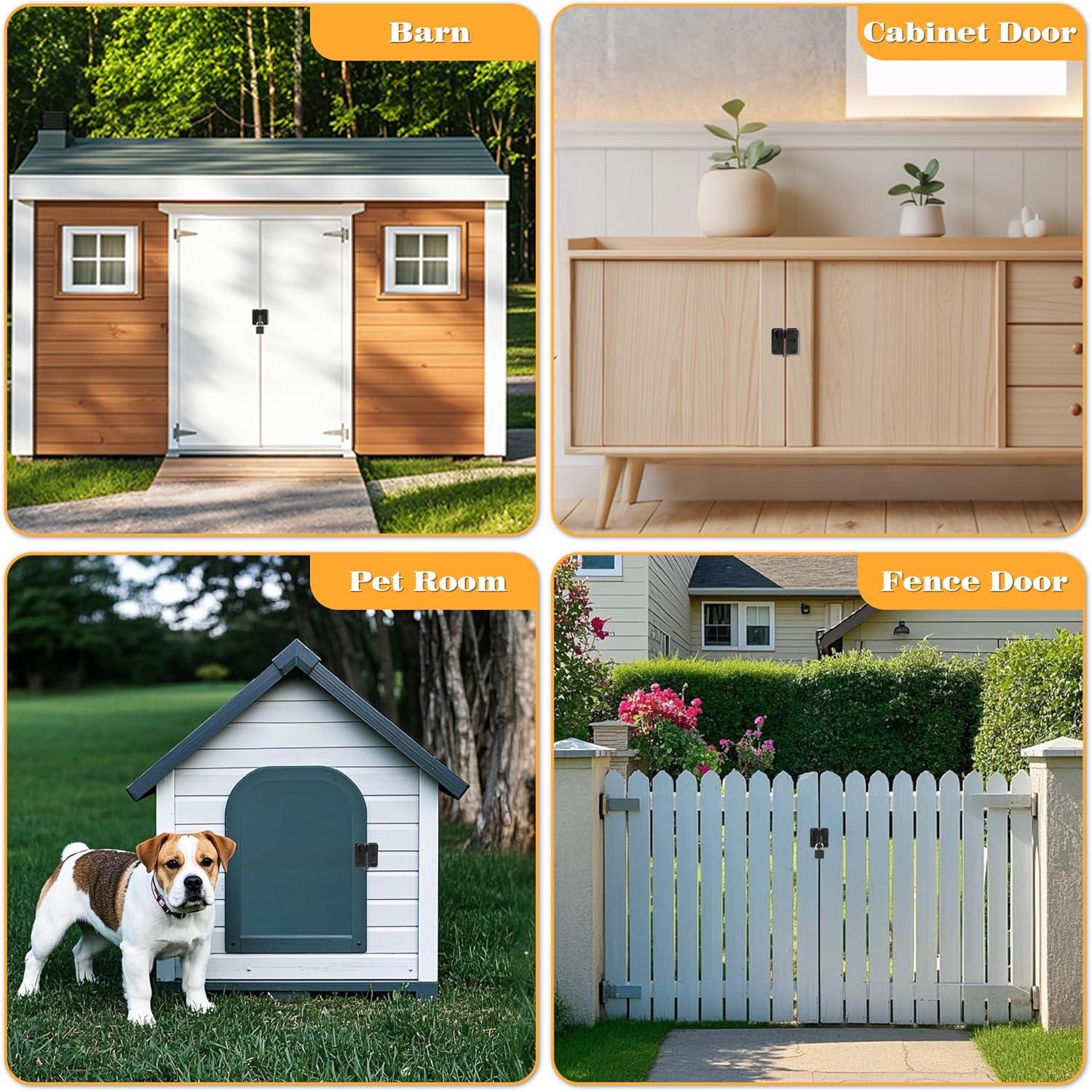 • 【Easy To Install】Installation hardware included, It only takes a few minutes to install; Applicable to various Barn Cabinet Pet Cage Garden Bathroom Toilet Garage Window Sliding Doors etc.
