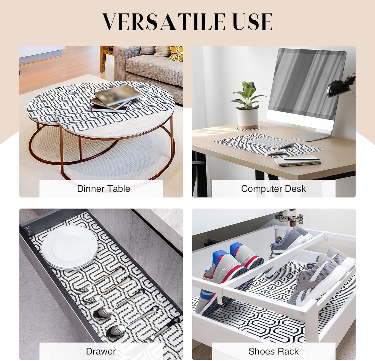 - Multifunctional- Keep everything organized. Mats can be used with any home shelves and storage spaces. Perfect for refrigerators, cabinets, drawers, bathroom, kitchen, or wherever you need them. Our liners help protect from moisture and dirt and are waterproof.