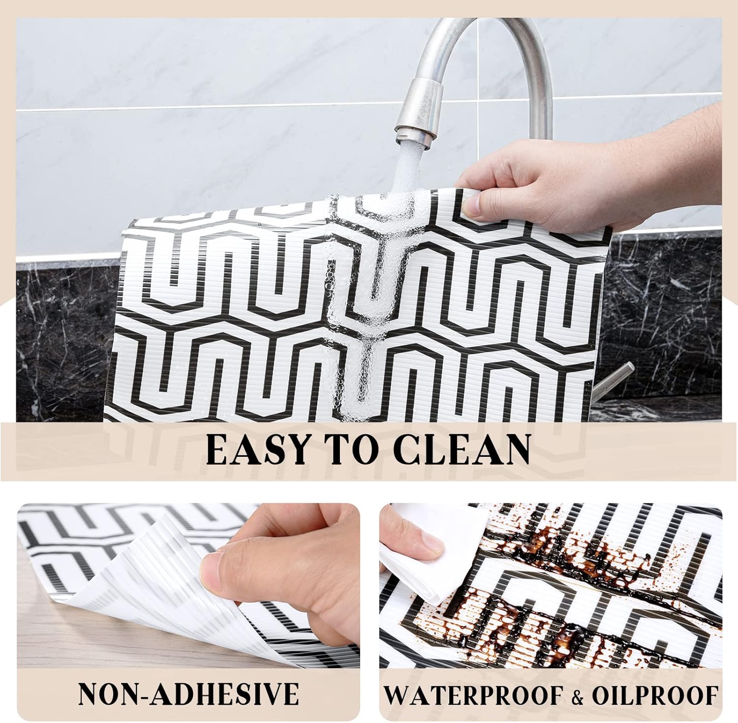 - Waterproof and Easy to Clean- These storage shelf liners are waterproof and dust-proof which keeps belongings in your kitchen cabinet, fridge and drawer organized and protected from grease and spills. The non-adhesive shelf liners are easily removable and can be cleaned with mild soap and water.