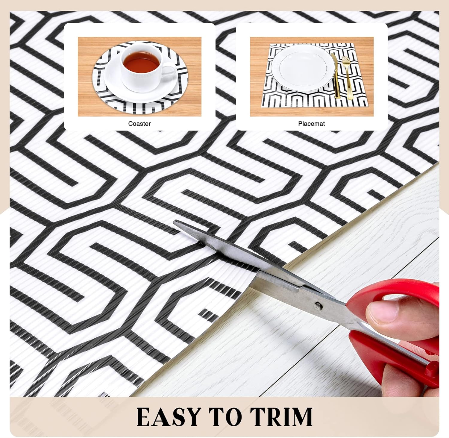 - Easy Installation- Comes in the most popular pre-cut sizes for easy installation. For unique sizes and shapes, you can simply trim the liner with a household scissor. Just place the liner down in your drawer or cabinet and trim off any excess material. Plus, the liners are non-adhesive and easily removable.