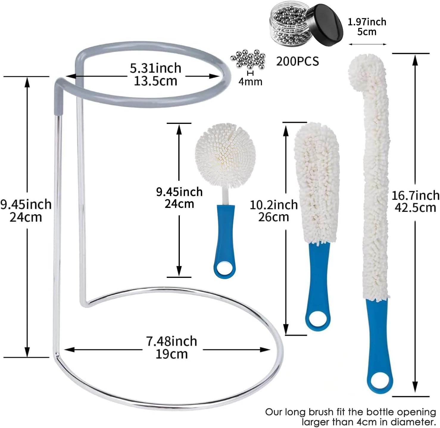 - 💝【Premium Material & Reusable】The wine drying stand's stainless steel construction won’t rust or bend. Rubber coating around the inner protects the decanter from scratching, stable and safe. The brush is made of quality foam, which is flexible and firm to use, the cleaning beads are made of stainless steel, comes with uniform friction with the inner wall of the container without damage, safe and reusable.