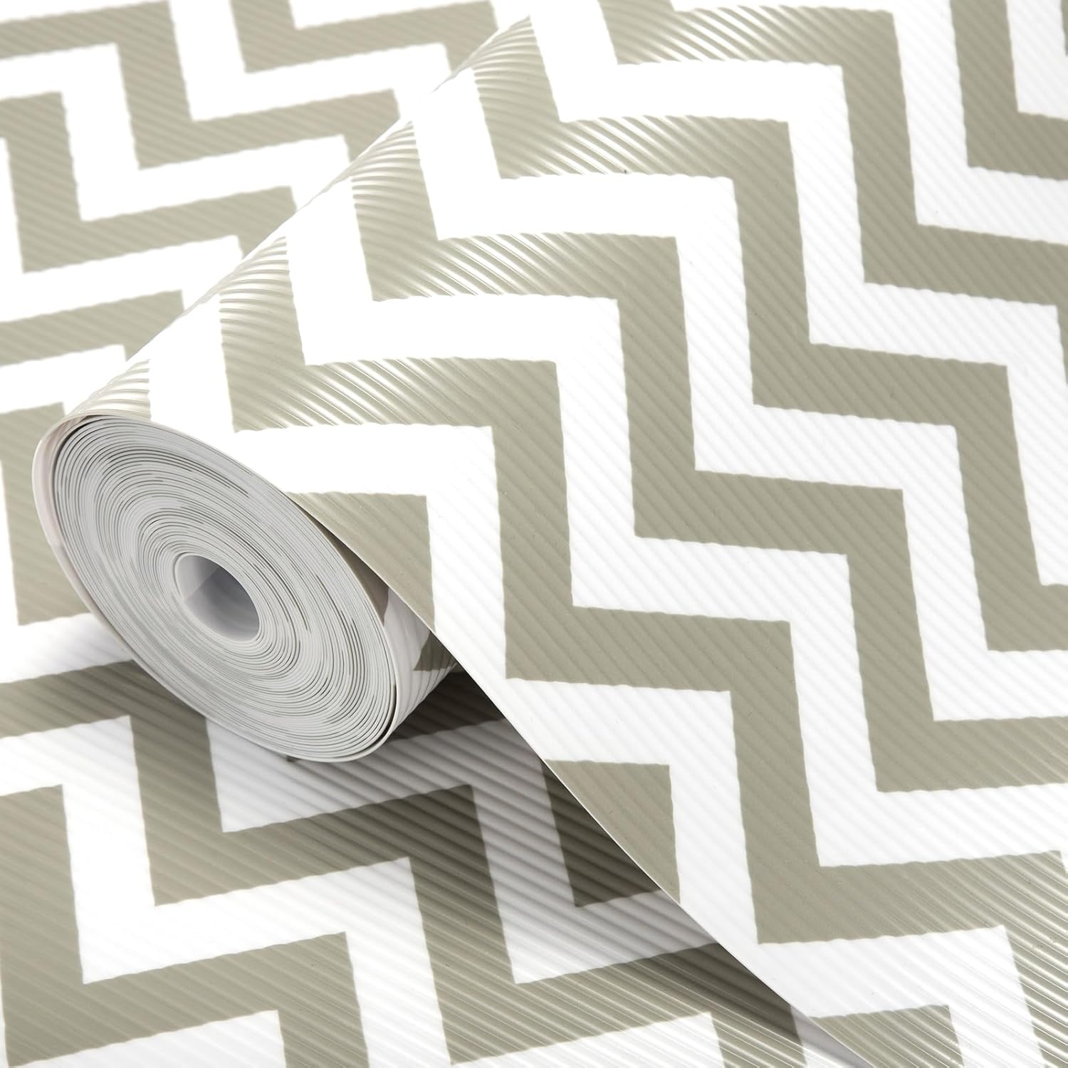 Glotoch Shelf Liner 12" x 20FT Non Adhesive Refrigerator, Kitchen, Drawer Liners, Waterproof and Durable Fridge Table Place Mats for Cupboard, Cabinet, Drawer Liner, Gray and White, Chevron