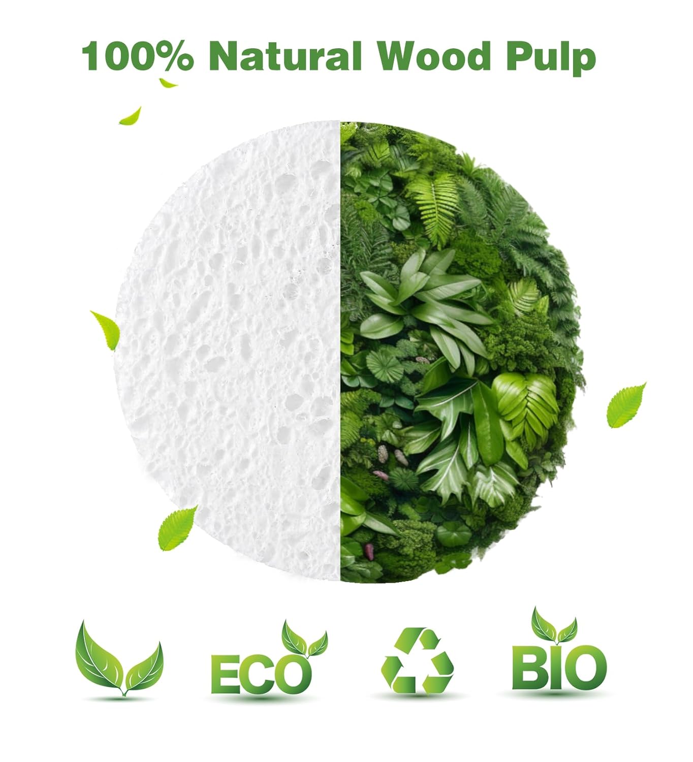 • 【NATURAL & Safe】: Made of 100% natural sponge extracted from wood pulp, good absorbency .Tips: Absorb water and becomes soft to touch before use