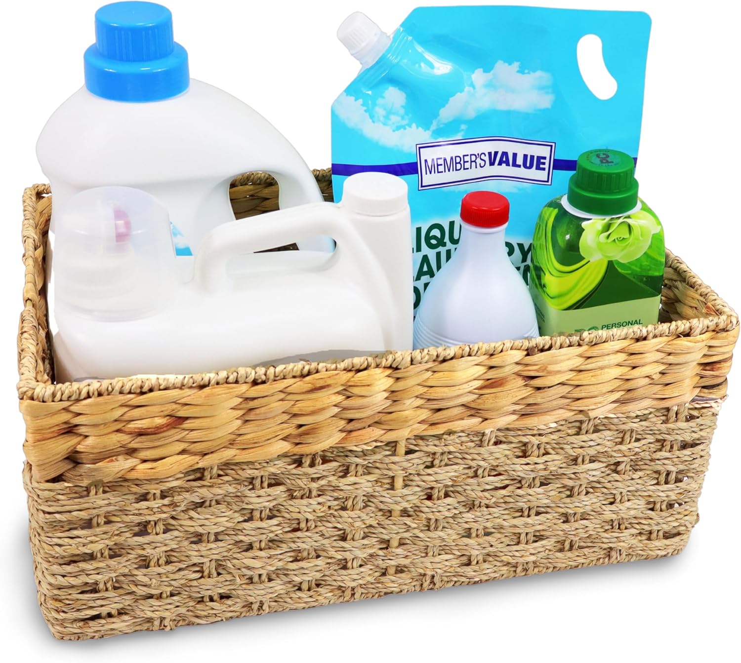 - NATURALLY SAFE AND BEAUTIFUL - Bring warmth and charm with our large wicker basket, natural seagrass and hyacinth, chemical-free and eco-friendly. The rectangle basket boasts a smooth, woven finish, ensuring lasting beauty without fraying or sharp edges.
