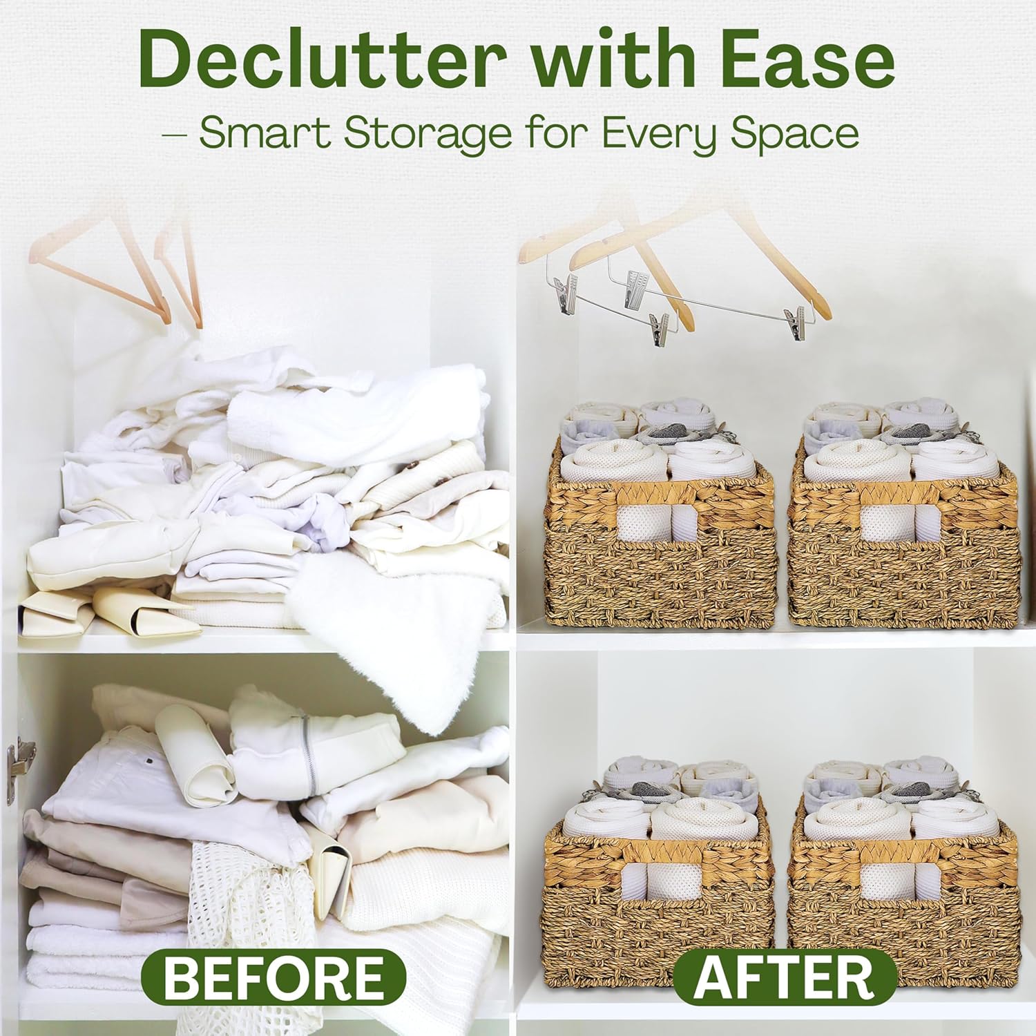 - EFORTLESS CLEANING, LASTING BEAUTY - Keep your eye-catching wicker storage bins looking fresh with a quick wipe! This water hyacinth basket is easy to clean—just use a soft cloth or duster. Enjoy hassle-free cleaning and lasting beauty.