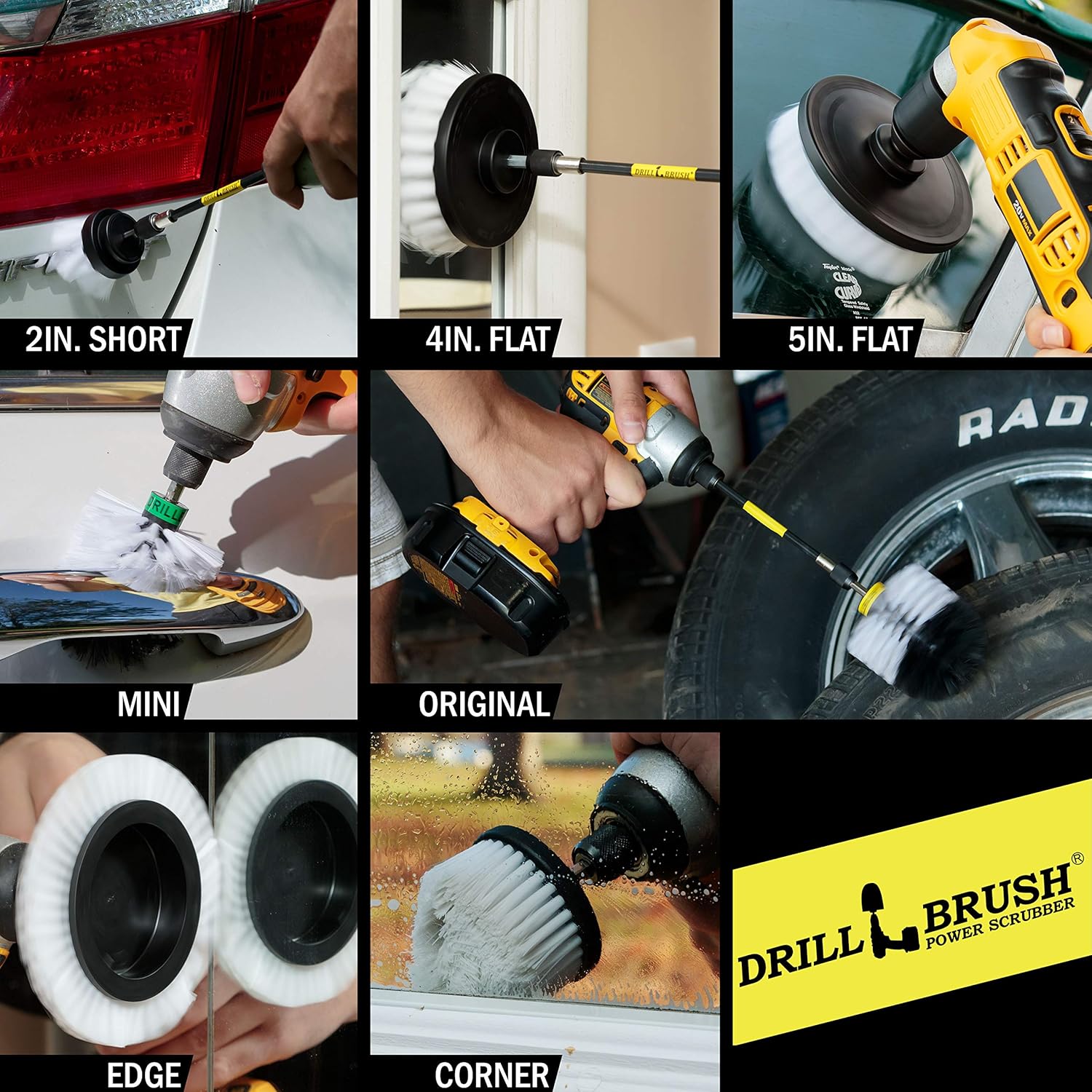 - This car/carpet cleaning kit includes two of our most popular power scrubbers: The Drillbrush Original Power Scrubber (one full size and one MINI size) corner and contour brushes in a soft white version. Use these classic contour brushes to clean car and motorcycle wheels, RVs, Boats, Jet Skis, Jeeps, and off-road vehicles. Interior grime, stains and spills are no match for the rotary scrubbing action of The Original Drillbrush Power Scrubber.