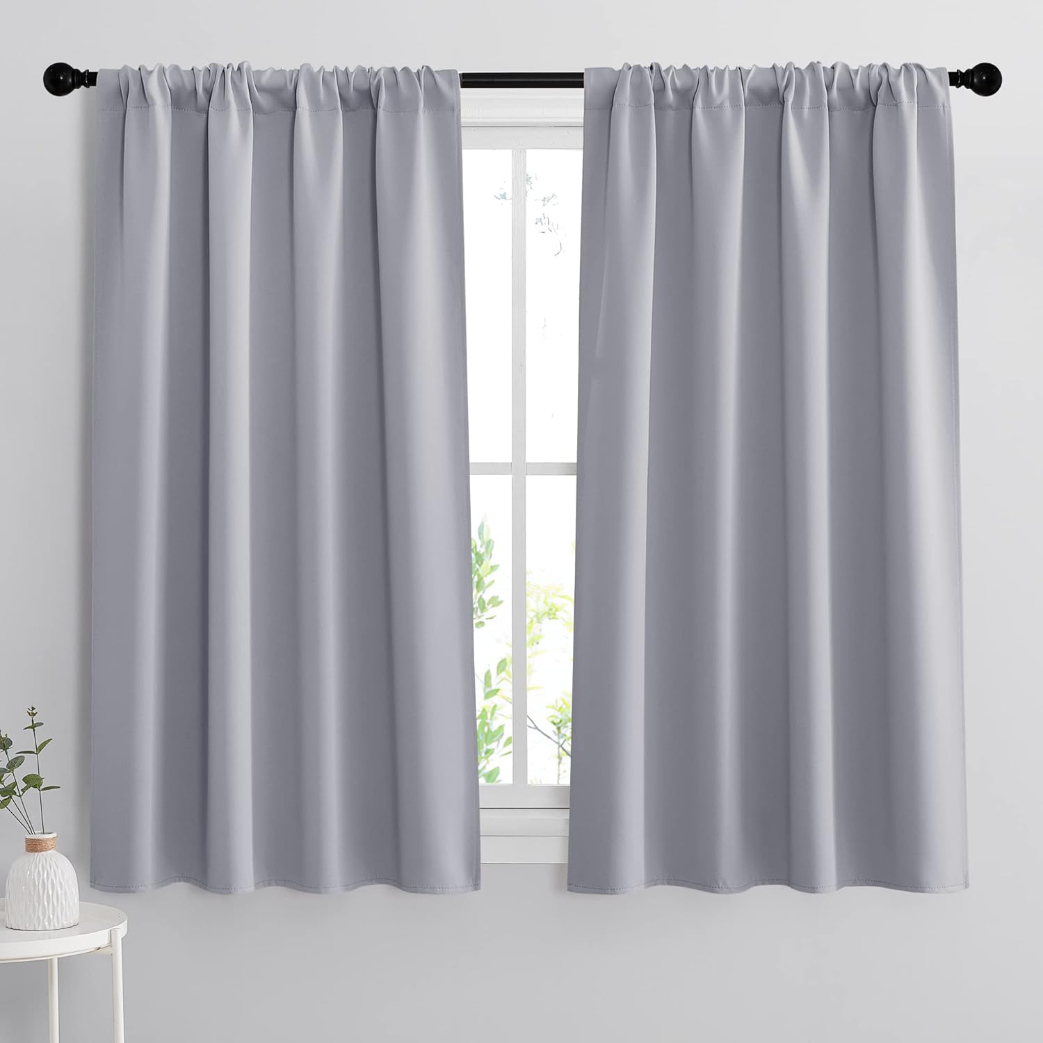RYB HOME Blackout Curtains for Living Room Thermal Insulated Privacy Solar Drapes for Kids Bedroom Cafe Bathroom, 42 inch Width x 54 inch Length, Silver Grey, 2 Panels