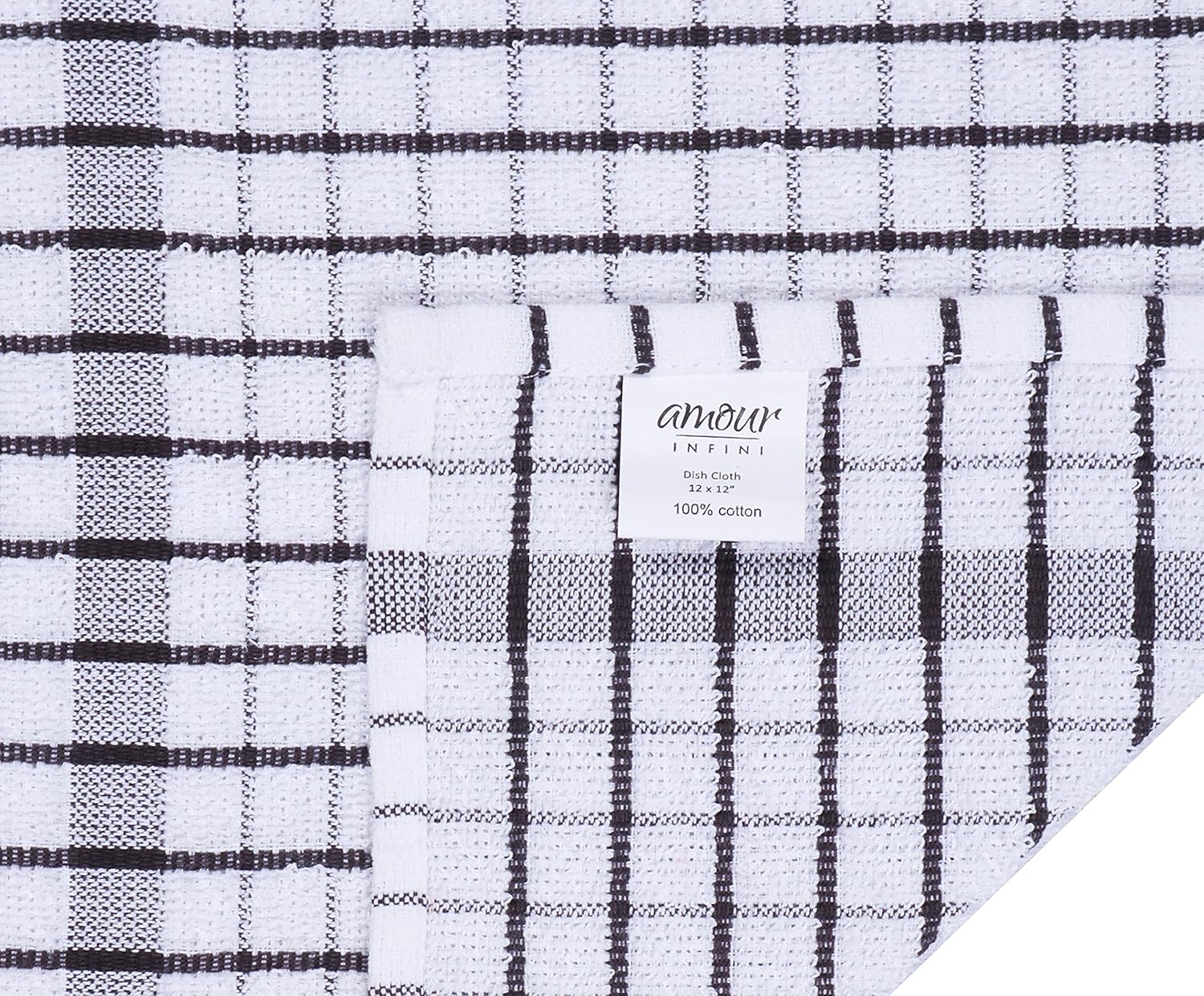 AMOUR INFINI Kitchen Dish Cloths Set of 8 - Ultra Soft, Highly Absorbent, Quick-Drying Terry Cotton Dishcloths 12"x12" Inch Wash & Cleaning Cloths for Kitchen & Dishwashing (Assorted)