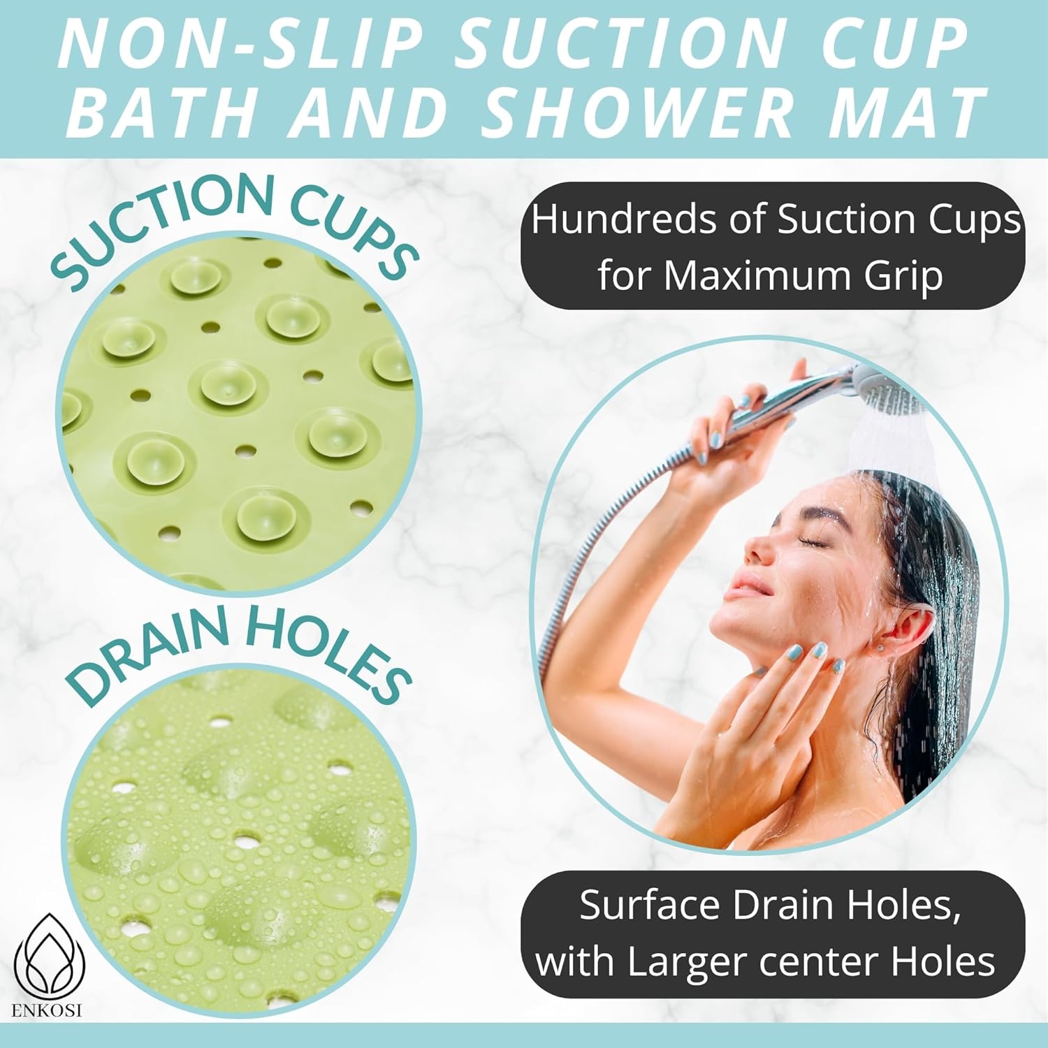 ENKOSI Bath Mat - Large Non Slip Bathtub & Shower Mat - Extra Long 40 x 16 Inch Bathroom Mats for Tub Nonslip Anti Slip Bathmats (40x16 Green)