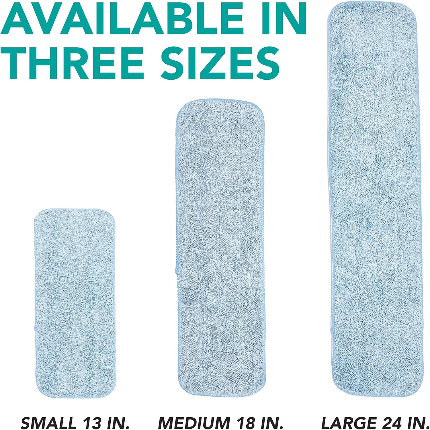• ALL SIZE CLEANING SUPPLIES: Our commercial mop pad refills are designed to work with all-size velcro-backed flat mop frames, including compatible with Bona and Rubbermaid Mop Heads. Mop pads come in 13", 18" and 24" and are effective in cleaning any floor surface - vinyl, hardwood, laminate, and tile.