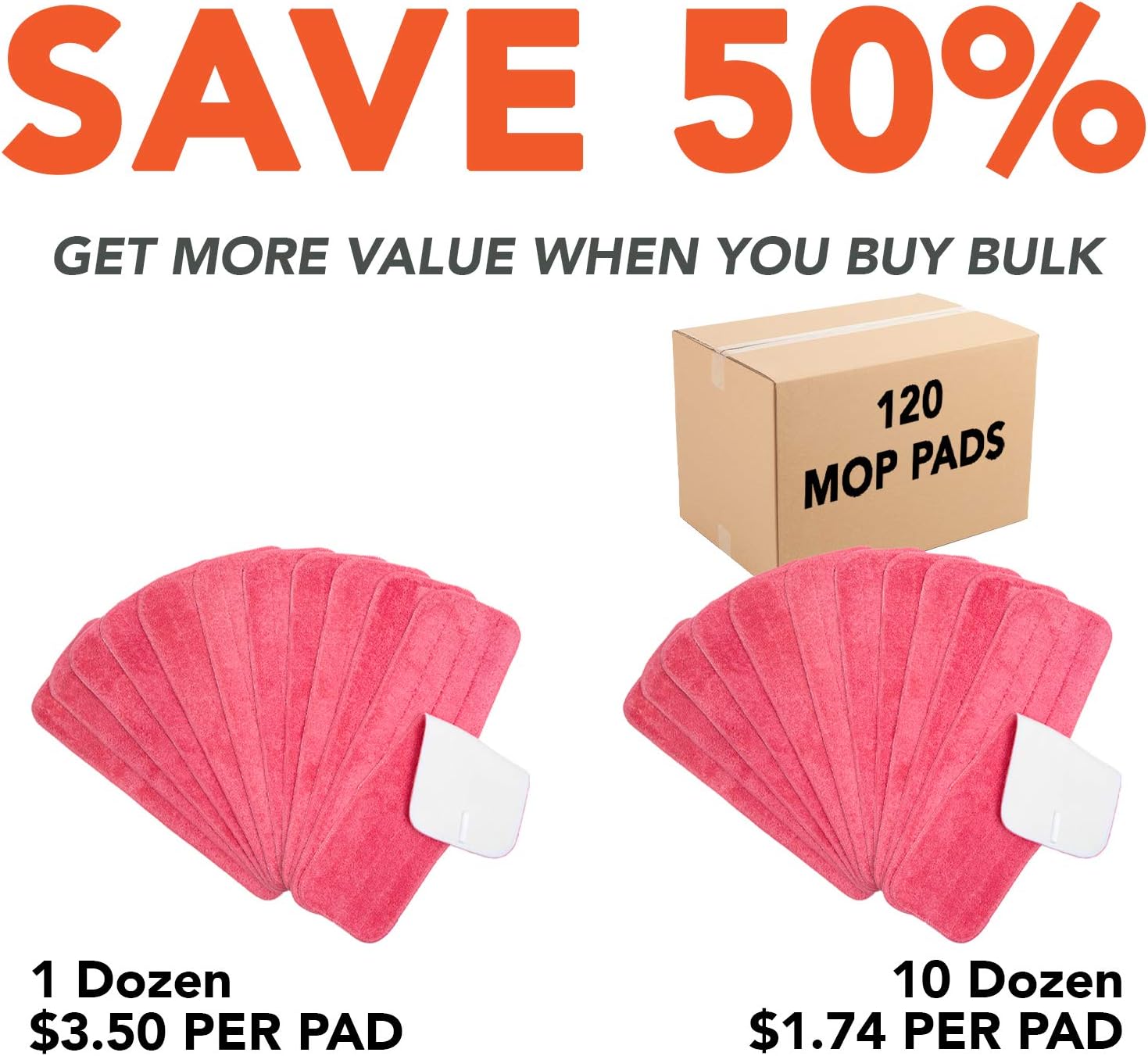 Arkwright Spray Mop Replacement Pads - (Pack of 12) Bulk Microfiber Flat Dry and Wet Refill Mop Pads Floor Cleaning, Compatible with Bona and Rubbermaid, Fits All Mop Heads, 18 in, Red