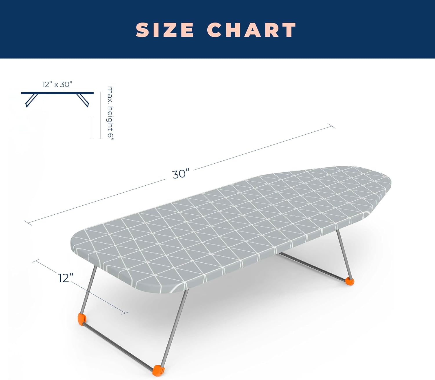 • LIGHTWEIGHT & SPACE SAVER: Happhom Tabletop Ironing Board is an excellent option for small places with its amazing space-saving size (12”x30”). It folds almost flat to fit anywhere where space is limited. It is easy to carry and take wherever you needed.