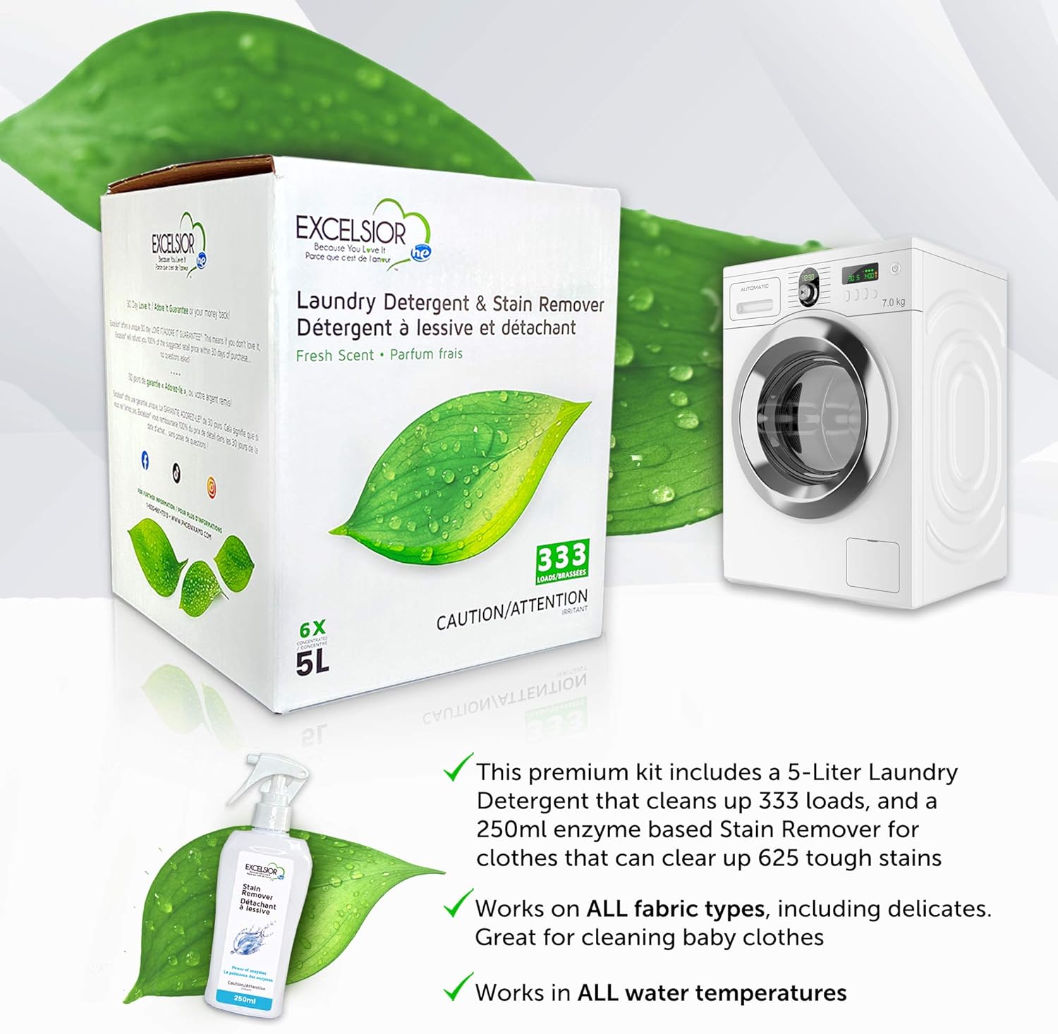 Excelsior (Because You Love It) HE Concentrated Liquid Laundry Detergent with Stain Remover, Removes 333 Loads for Cleaning Clothes, Phosphate-Free, Solvent-Free, Fresh Scent, 5L (1 Pack - New Look)…