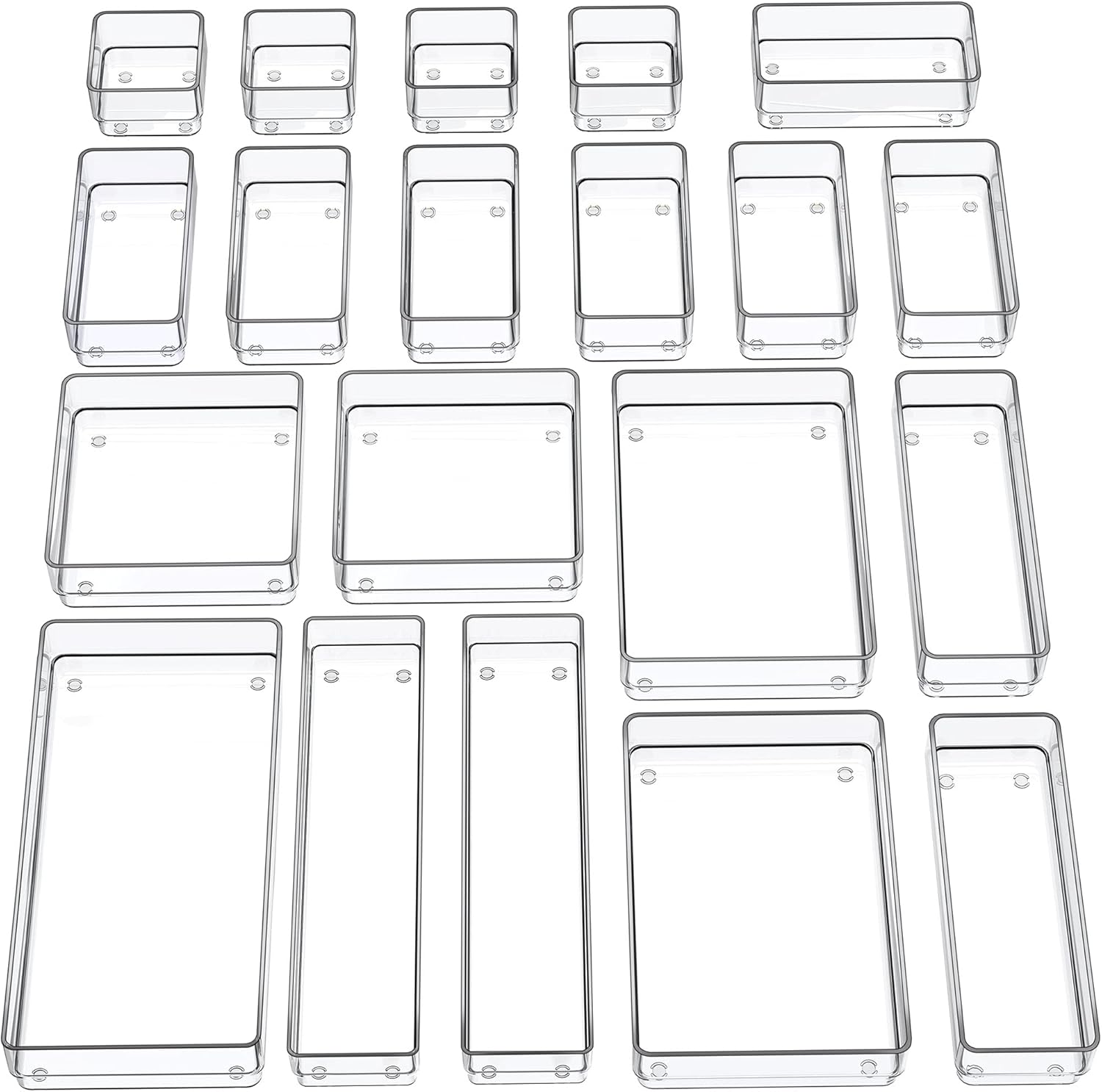 • Multiple Sizes - 7 different sizes and 20 pieces trays offer you customize combinations to store stuff and organize drawer for your specific needs! Size: 8.9 x 5.9 x 1.9 IN (2 Pcs), 5.9 x 5.9 x 1.9 IN (2 Pcs), 5.9 x 3 x 1.9 IN (7 Pcs), 3 x 3 x 1.9 IN (4 Pcs), 8.9 IN x 3 IN x 1.9 IN (2 Pcs), 12 IN x 3 IN x 1.9 IN (2 Pcs), 12 IN x 5.9 IN x 1.9 IN (1 Pcs)