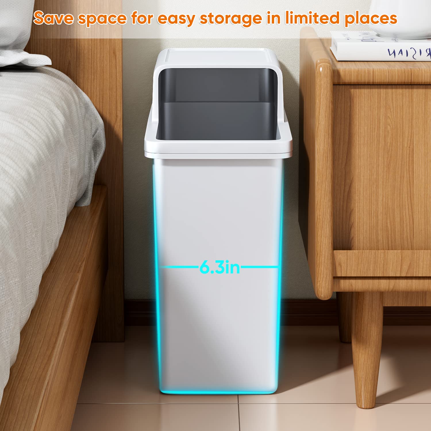 JOYBOS Bathroom Trash Can, Small Dogproof Garbage Can with Lid 14 Liter Slim Plastic Bin 4 Gallon Waste Basket for Bedroom Office Trashcan RV Narrow Place,White