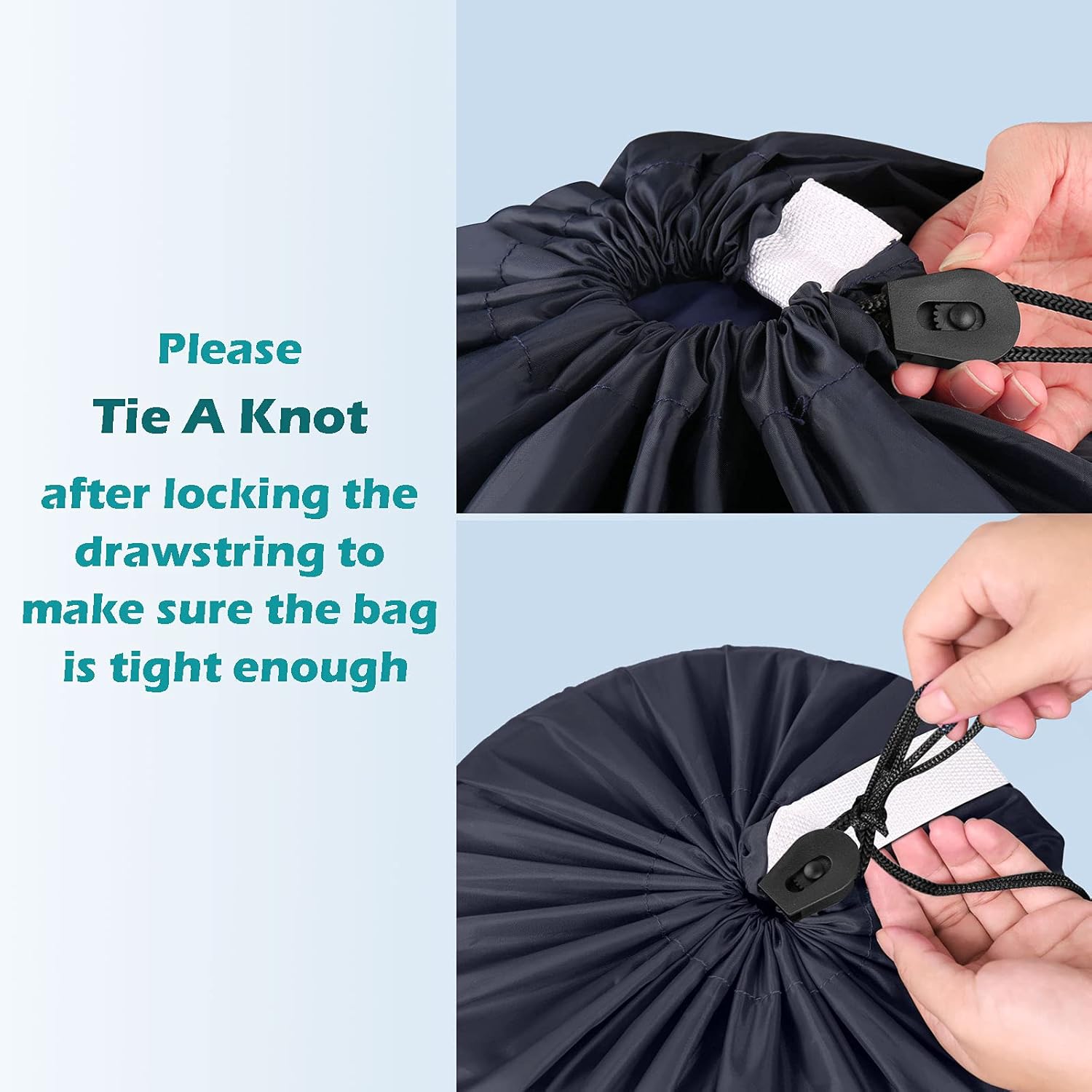• Upgraded Drawstring Closure:The laundry bags equipped with a pie-type locking drawstring make the closure tighter.Please note that a tight knot over the drawstring cord lock can prevent the spill of clothing, keeping the clothes safe in the bag.