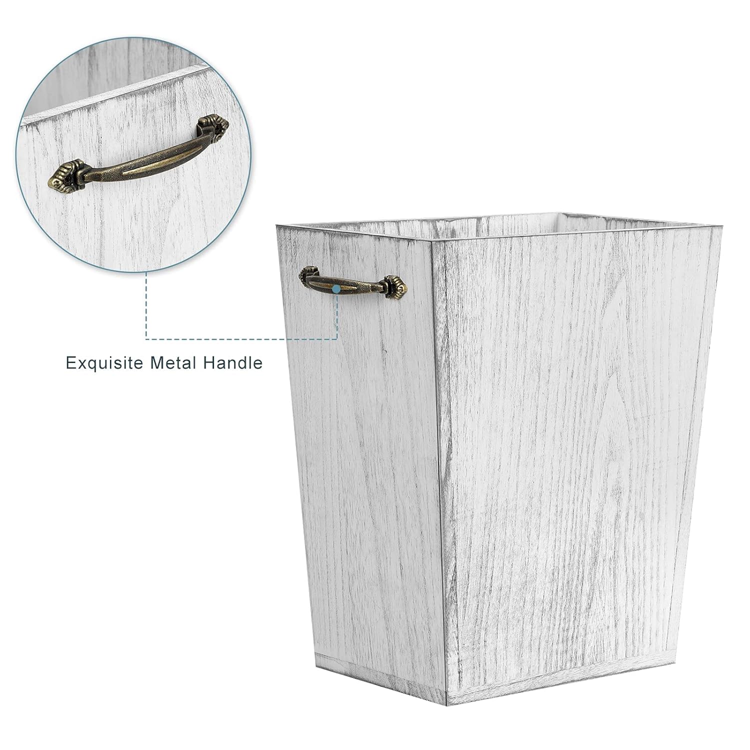 Wood Wastebasket Trash Can Rustic Farmhouse Square Garbage Container Bin with Decorative Metal Handle for Bedroom, Living Room, Bathroom & Office