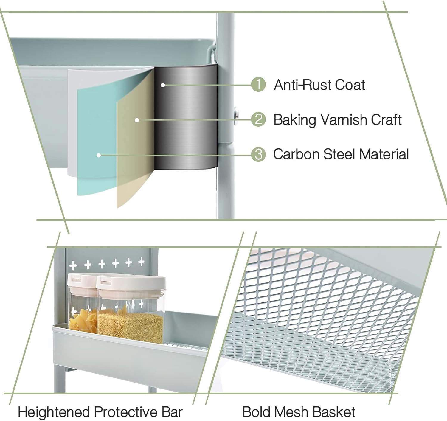 - 💦EXPLORE THE UTILITY for APPLICATION | Designed for creating extra storage space, this functional storage cart is friendly for space-saving and easy transport. Not only for pantry, kitchen, livingroom, bedroom, laundry room. But also perfect for office suppliers, classroom appliace, and hosipital suppliers. The side pegboards are effective to hang the things you want to organize.