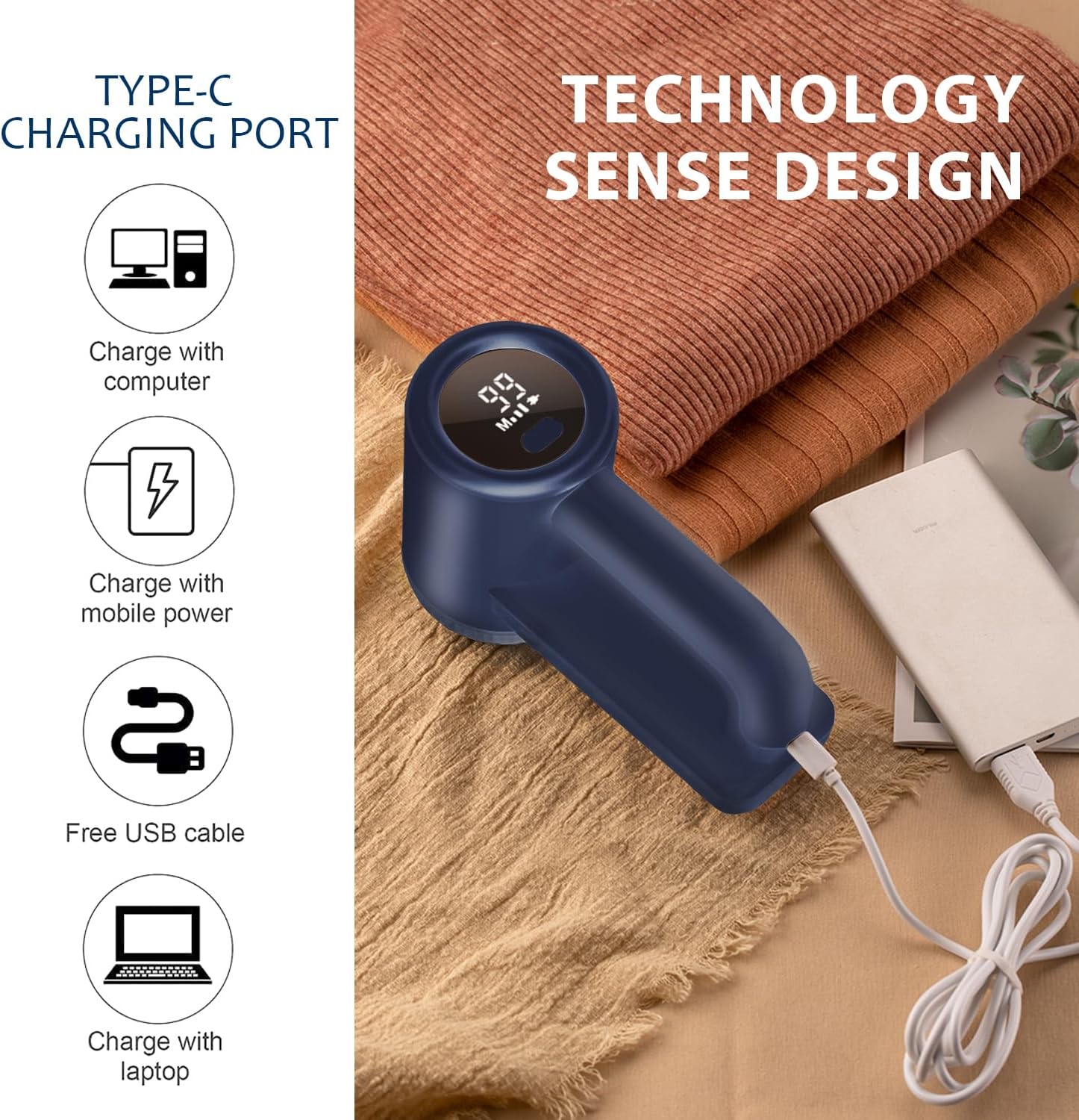 - ✅ Super Battery with Fast Charging: Built-in 2000mAh battery fully charges in 3 hours for 120-180 minutes of use. Fabric shaver for furniture/ clothes shaver pill remover equipped with a Type-C port cable can plug into any USB port - laptop, car, or power bank