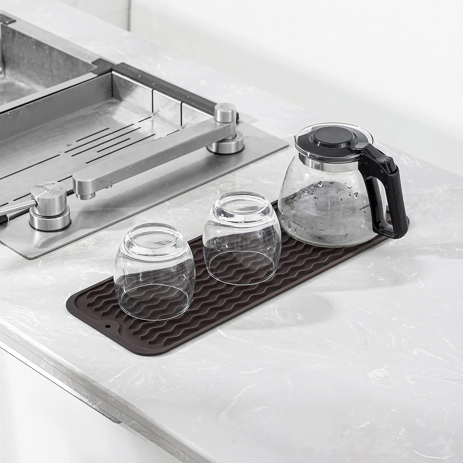 Silicone Dish Drying Mat for Multiple Usage,Easy clean,Eco-friendly,Heat-resistant Silicone Mat for Kitchen Counter,Sink,Bar,Bottle,or Cup Coffee M 17 inches x 6 inches
