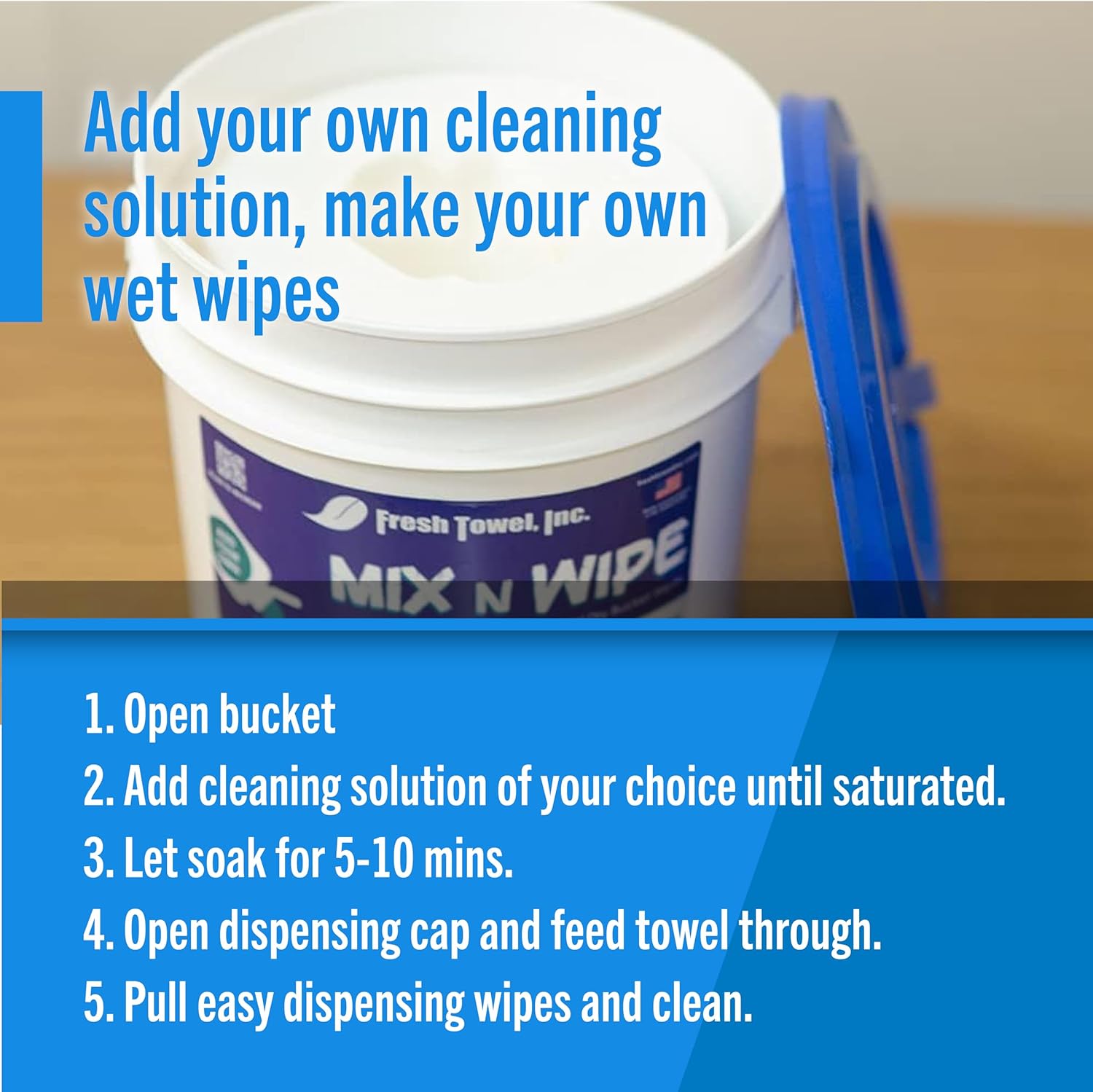 • MEET YOUR NEEDS: Whether you need cleaning wipes, a wet wipes dispenser, center pull paper towels, a 1 gallon bucket multi-surface cleaner, commercial paper towels, or a gentle, natural cleaning supplies bundle, simply add your own solution to mix and wipe.