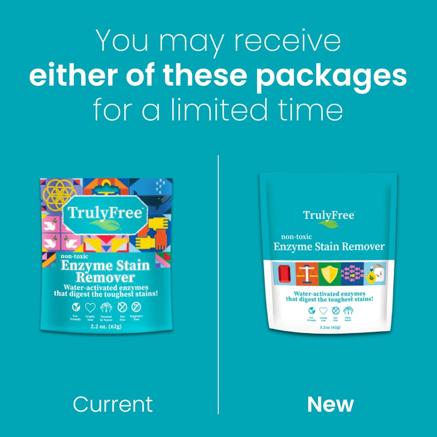 Truly Free Enzyme Laundry Stain Remover - Natural Laundry Detergent Booster for Blood, Grass, Pet Urine & Odor - Biological Washing Powder for Clothes, Couch Fabric (50 Scoops)
