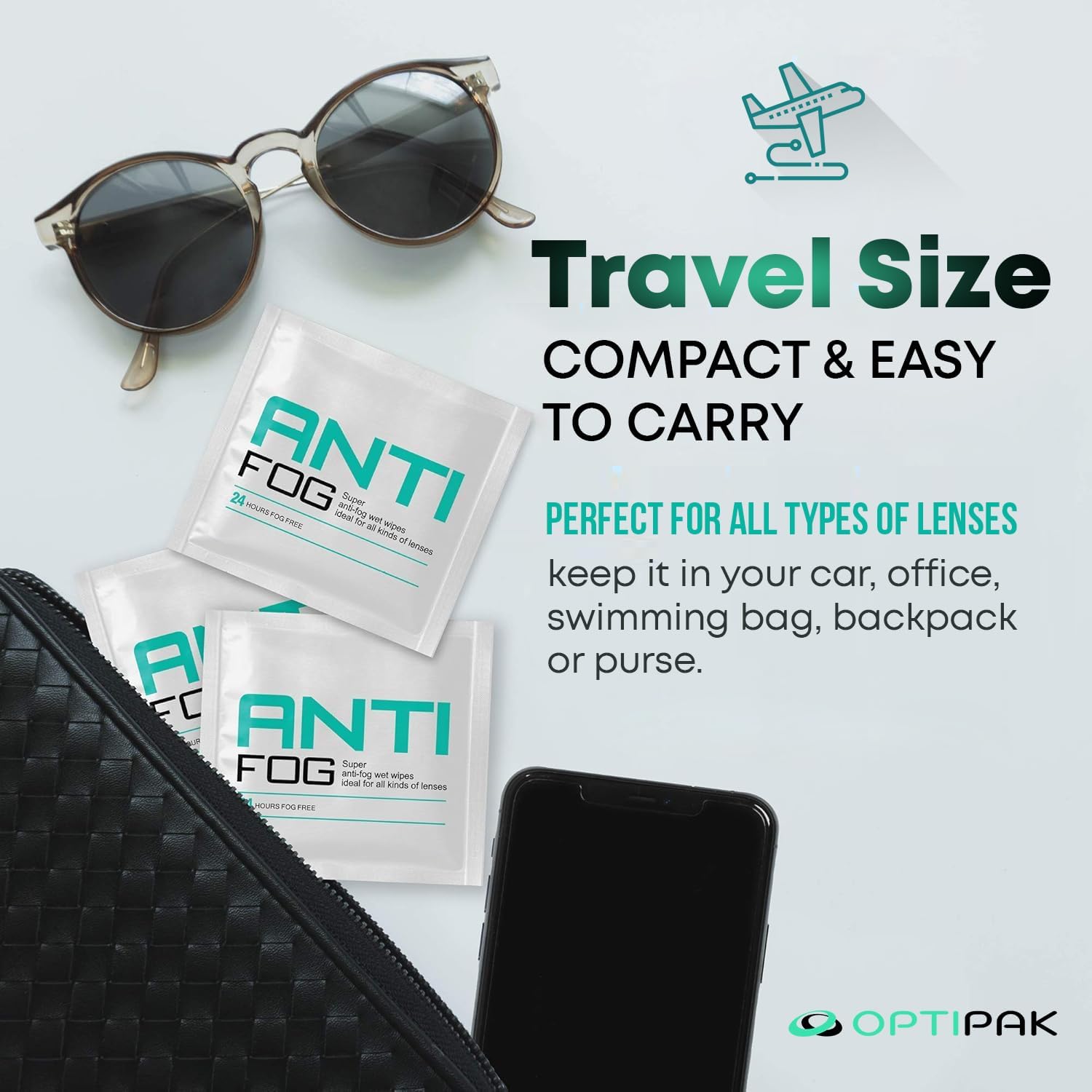 • Pre-Moistened Anti Fog Lens Cleaner Wipes: Optipak's premoistened glasses wipes clean and treat eyeglasses, sunglasses, goggles, and safety eyewear. Each individually wrapped wipe ensures clear, fog-free lenses in seconds.