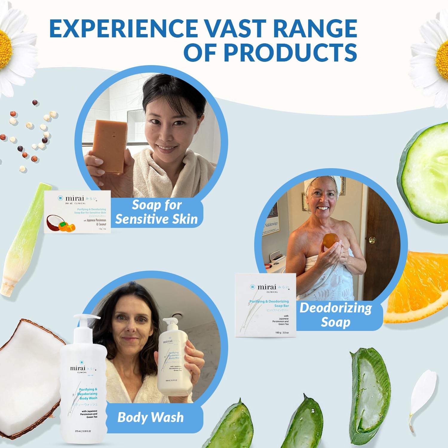 Mirai Clinical - All Natural Deodorant for Women and Men - w/Japanese Persimmon Extract - Full-Body Use - Aluminum, Fragrance, Paraben Free - Vegan - Helps to Eliminate Nonenal Odor - Unscented - 75g