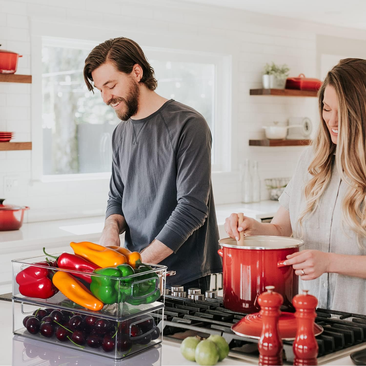 - 【Sturdy, Food Safe Design & Clear View】 Our stackable fridge organizer made of durable high quality food safe BPA free plastic polyethylene material, these acrylic storage bins are lightweight but sturdy. Also strong construction makes these Clear pantry organizer bins strong enough to last for long. Clear design keeps food items visible and easy to locate.