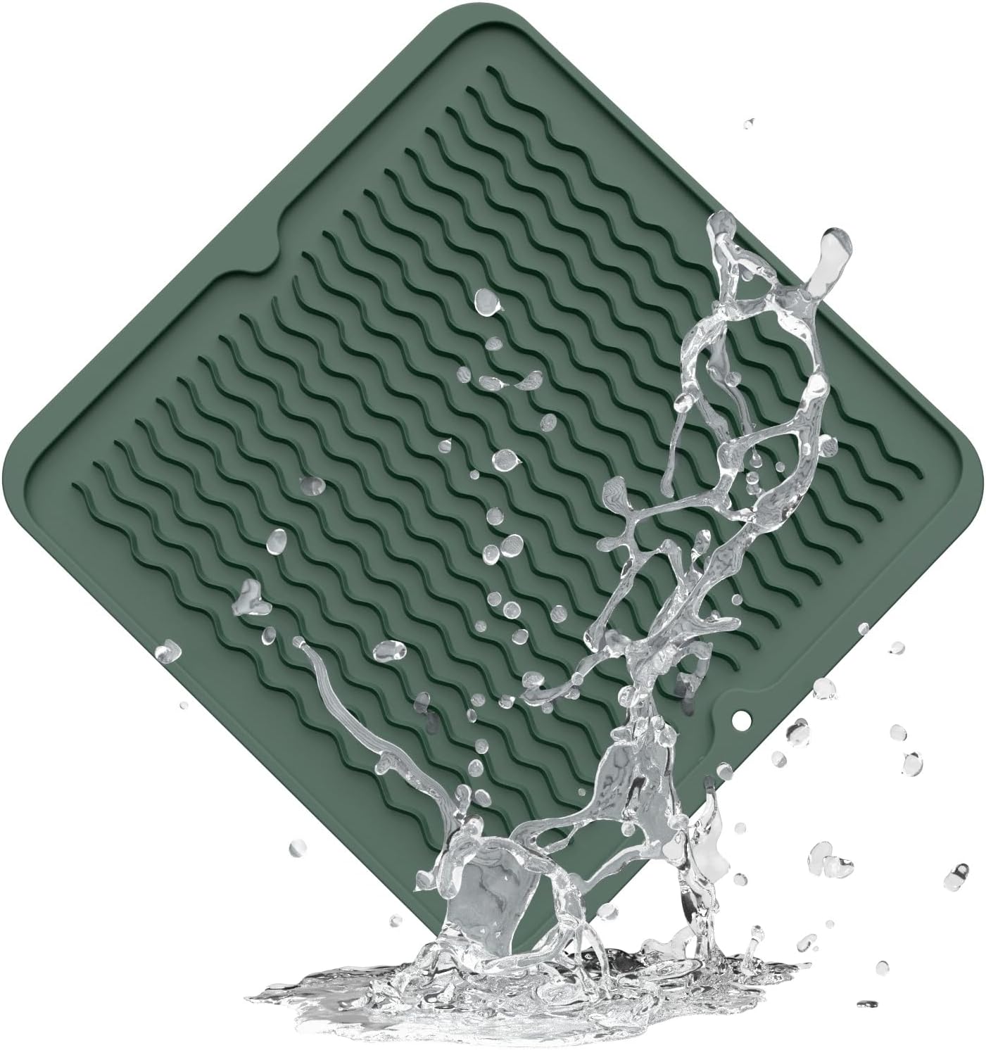 ZLR Silicone Dish Drying Mat for Kitchen Counter, Eco-Friendly Fast Dry Dish Mat, Easy Clean Multi Usage Drying Matt, Heat Resistant Trivet, 12" x 12" Middle, Dark Green