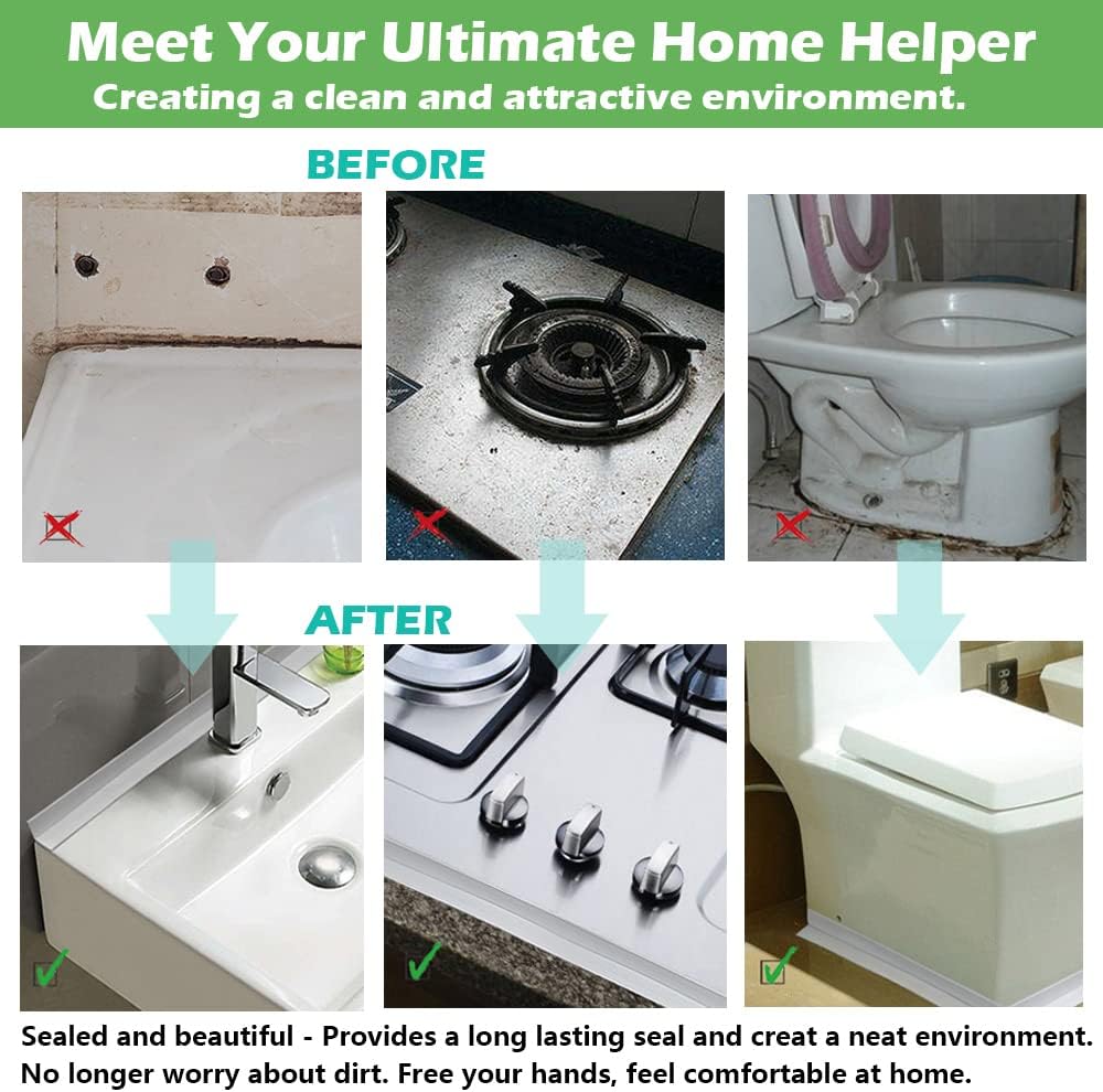 • Wide Application - Super helper at home. Wildly used in sealing the seams of gas stove, sinks, shower,toilet bottom, washbasin,corner joints, window sill and cracks, keep your home clean and tidy. Specially designed for family.