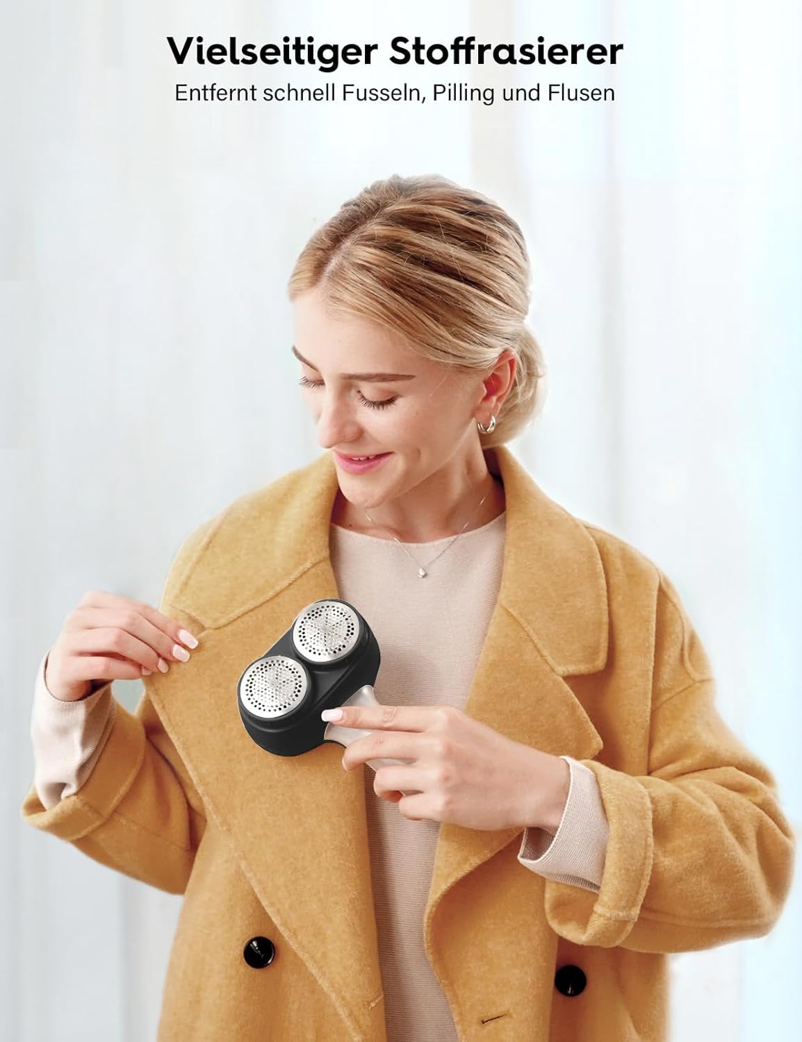 - ✅ Durable And Sleek Build - The handheld fabric shaver uses two large-size 6-leaf blades that not only help quickly remove lint but also last longer. The rechargeable battery that with 2 hours of charging (USB cable included) works for nearly 2.5 hours making it perfect for removing lint from blankets to jersey fabrics.