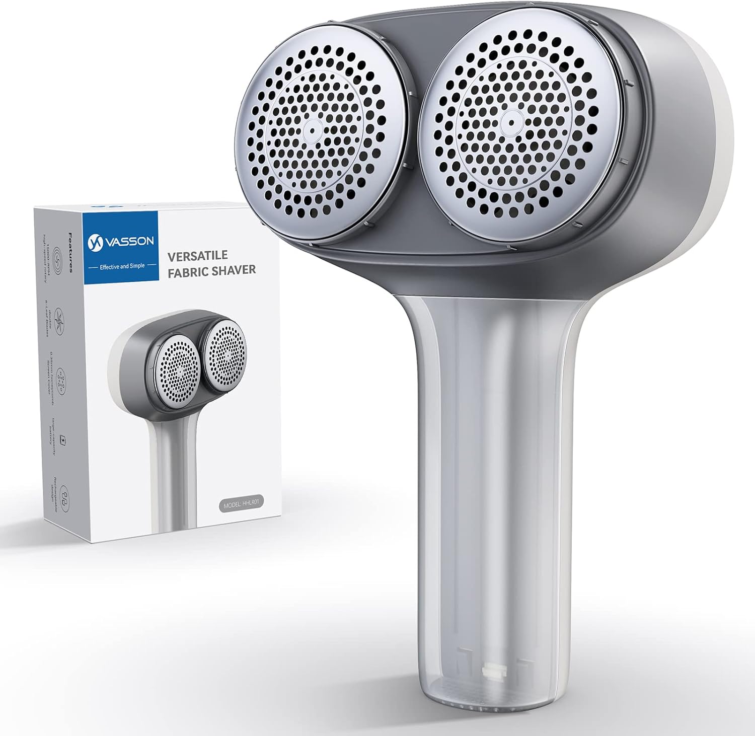 - ✅ Quick And Efficient Fabric Shaver - This fabric remover features a dual-head design that lets you cut through excess loose threads, fuzz balls, and lint to help you easily depill and defuzz your clothes. With two high-speed motors, VASSON defuzzer can help you to get rid of every bit of fur and gives your pilled, fuzzy garments a fresh look in just a few minutes.