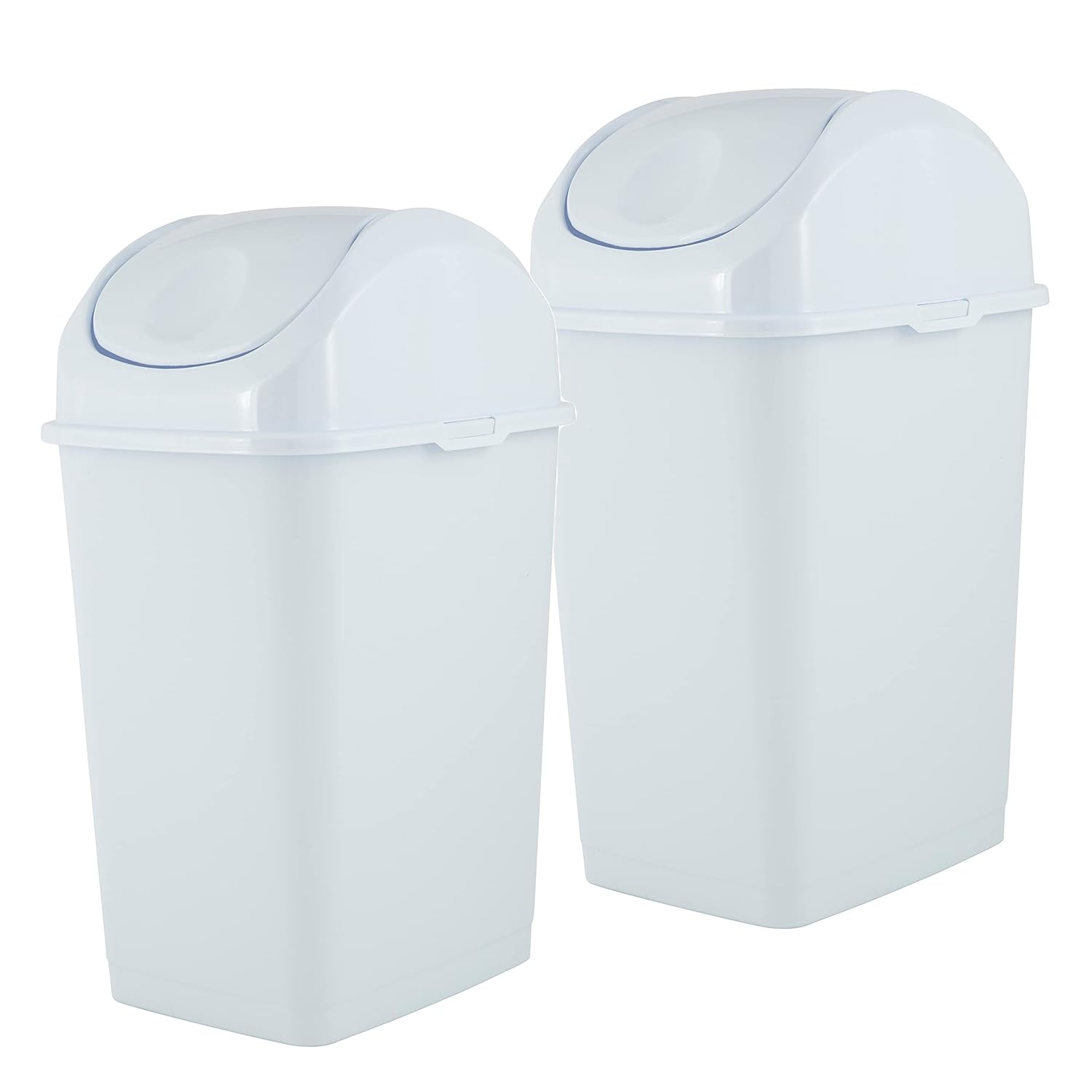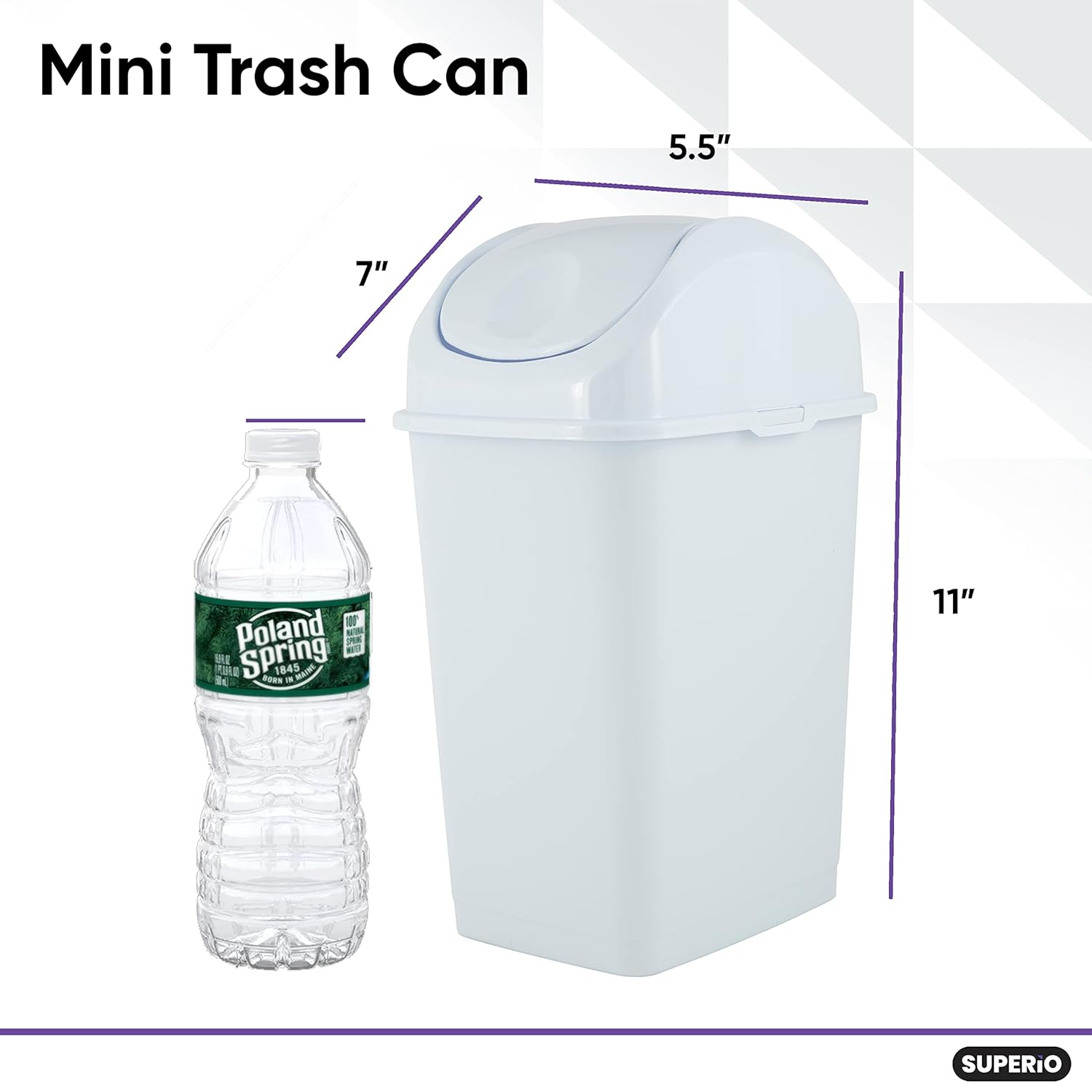 Superio Mini Desktop Trash Can with Swing Top Lid Portable Plastic Garbage Can for Countertop, Desktop, Make up Vanity, Bathroom, Car, Under Sink, Dorm, Compact Waste Bin 5 L 1.25 Gal (2, White)
