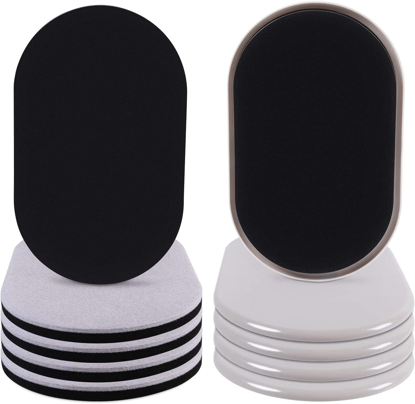 • ☛【Package Includes】- (8 Pack) 9 1/2" x 5 3/4" oval reusable large heavy duty furniture sliders. 4 Pcs felt sliders hard surfaces+ 4 Pcs plastic furniture pad for carpet , Beige.