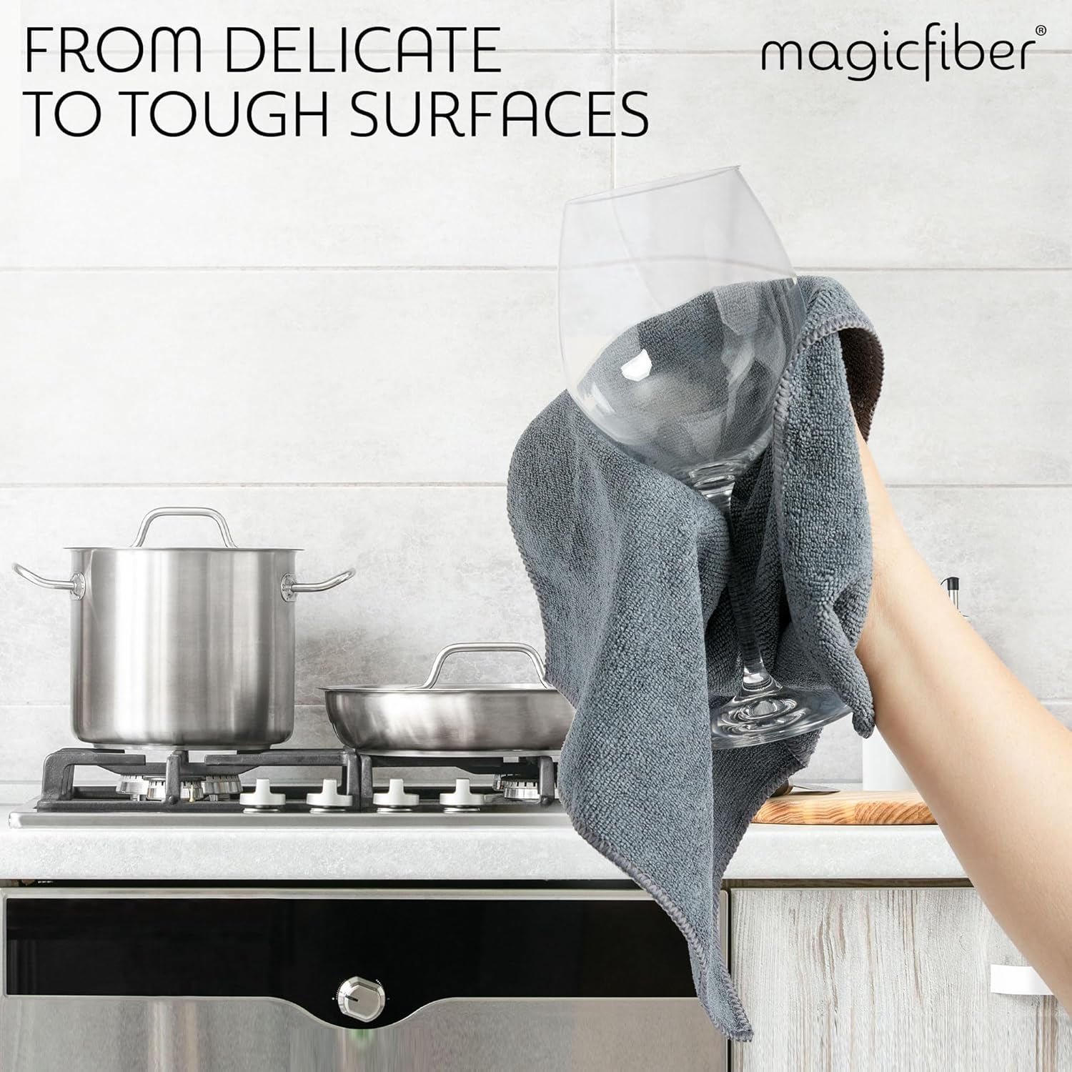 • MAGICFIBER CLEANING CLOTHS - This 12 pack of thick MagicFiber cleaning cloths includes 3 light gray, 3 light blue, 3 blue, and 3 dark gray cloths. Clean the household items that you care about quickly, effectively, and in style.