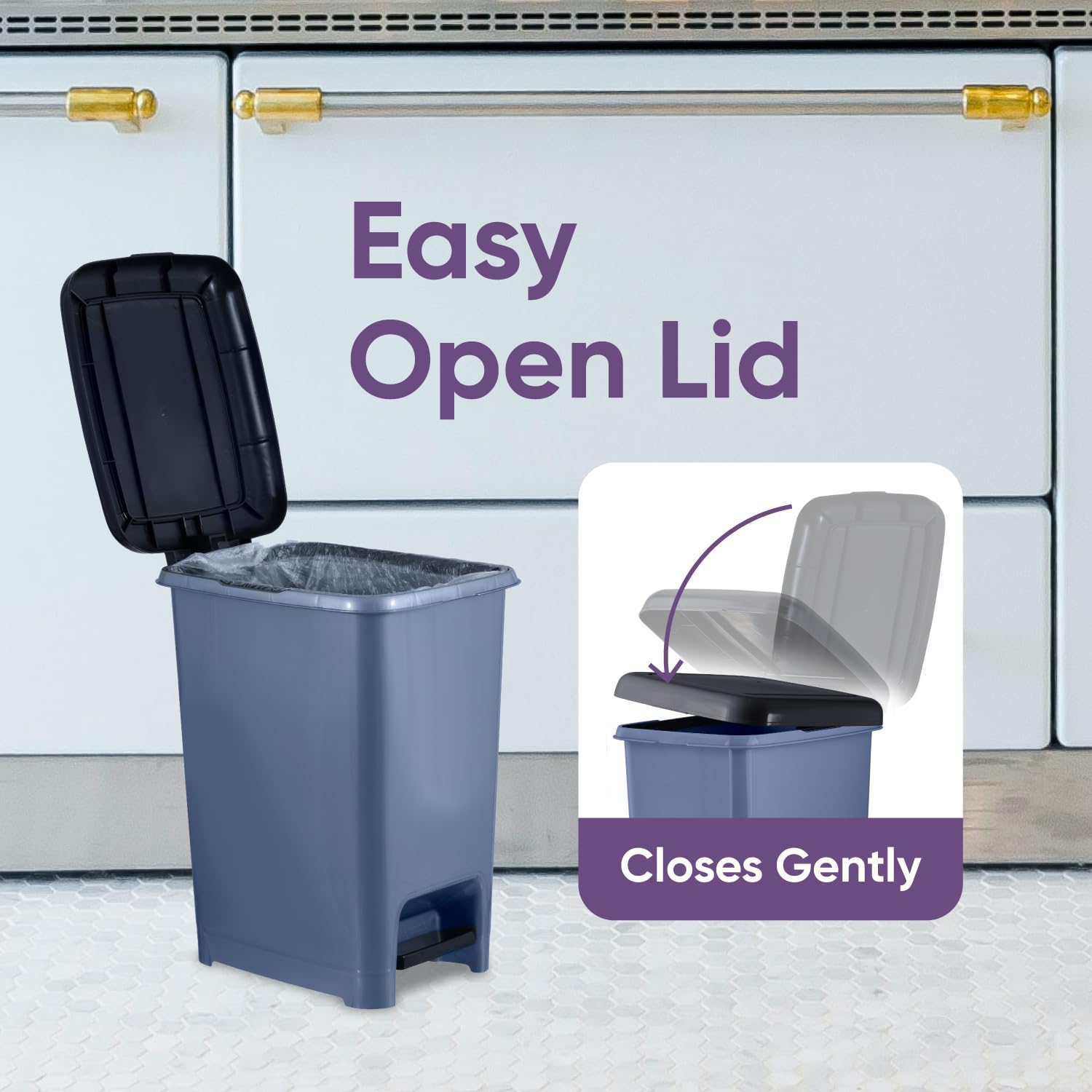Superio Slim Trash Can with Foot Pedal – 2.5 Gallon Step-On Trash Can with Lid, Small Plastic Mini Garbage Can, for Bathroom, Kitchen, Office, Under Desk, Bedroom, Dorm – Grey/Black (2)