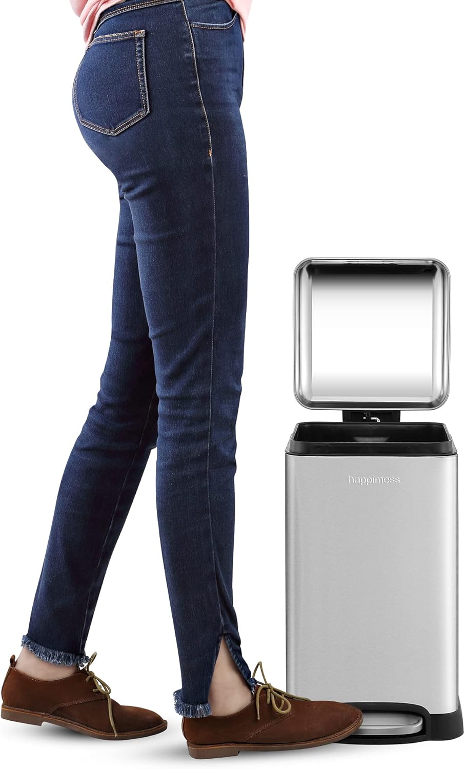 • STYLISH & PRACTICAL DESIGN: happimess Trash Cans clean-lined designs blend beautifully into your existing decor; Dispose of trash hands-free with our convenient step pedal; built-in damper lowers the lid quietly, and closes it tightly to keep odors inside