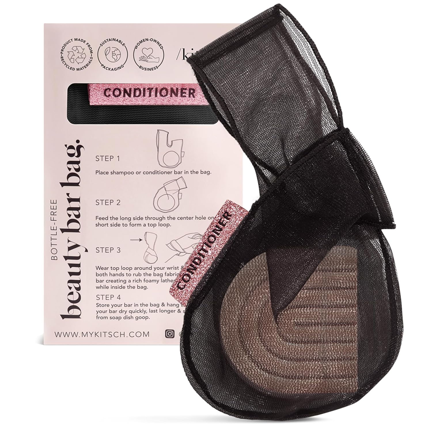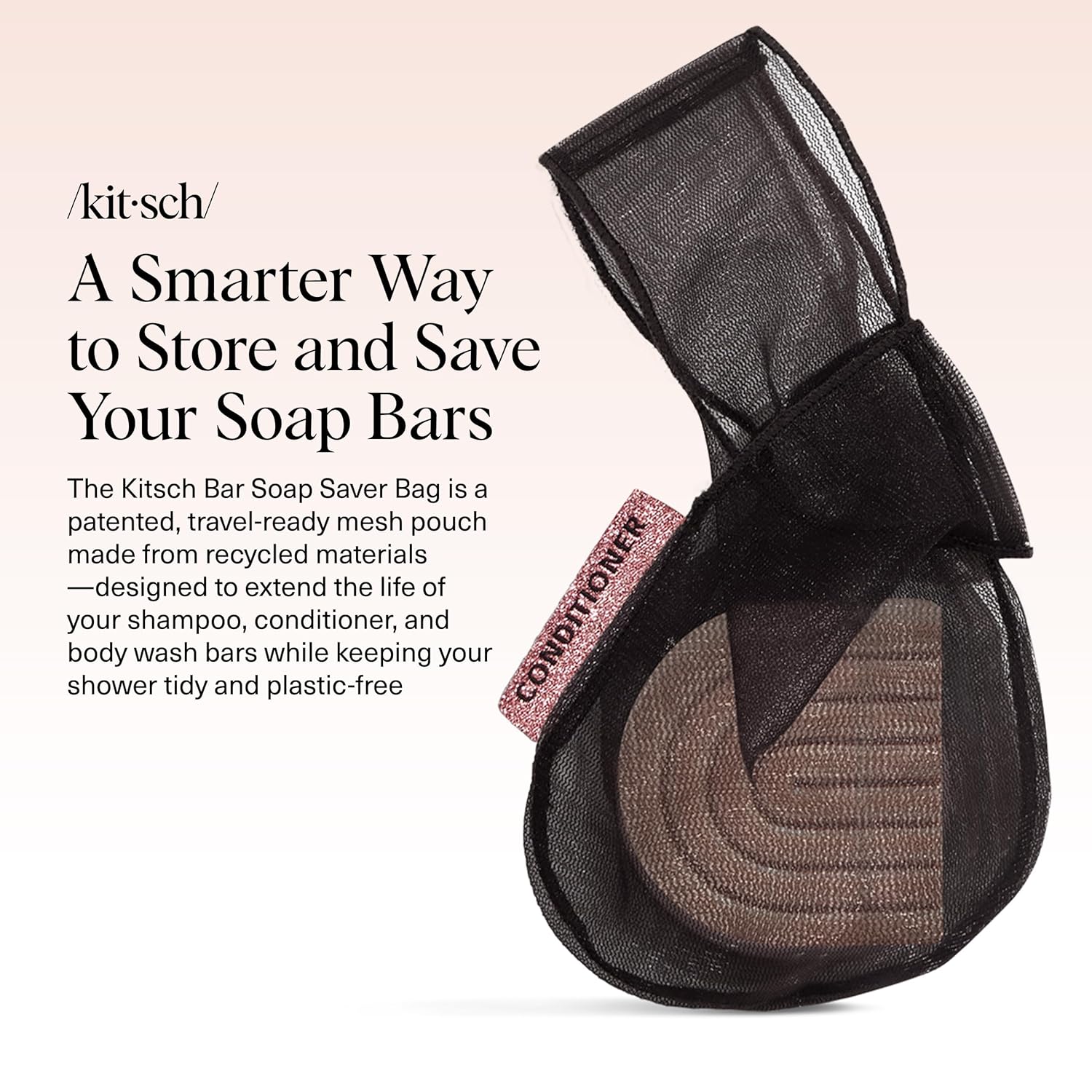 Kitsch Bar Soap Saver Bag – Patented Mesh Bag Soap Holder for Shampoo and Conditioner Bars - Extends Use & Prevents Soggy Mess - Recycled Mesh Beauty Pouch, Eco-Friendly – Black