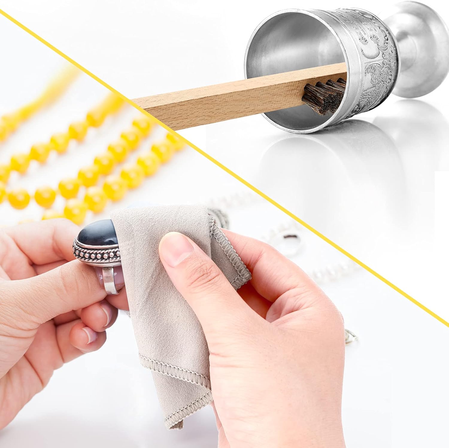 • Size Information: the length of the bristles is approx. 1.5 cm/ 0.6 inch; And the length of the brushes have 2 sizes, which are convenient to wipe the various details of the jewelry; The size of the silver wiping cloth is 15 x 15 cm/ 6 x 6 inches, which is easy to clean to difficult-to-clean locations