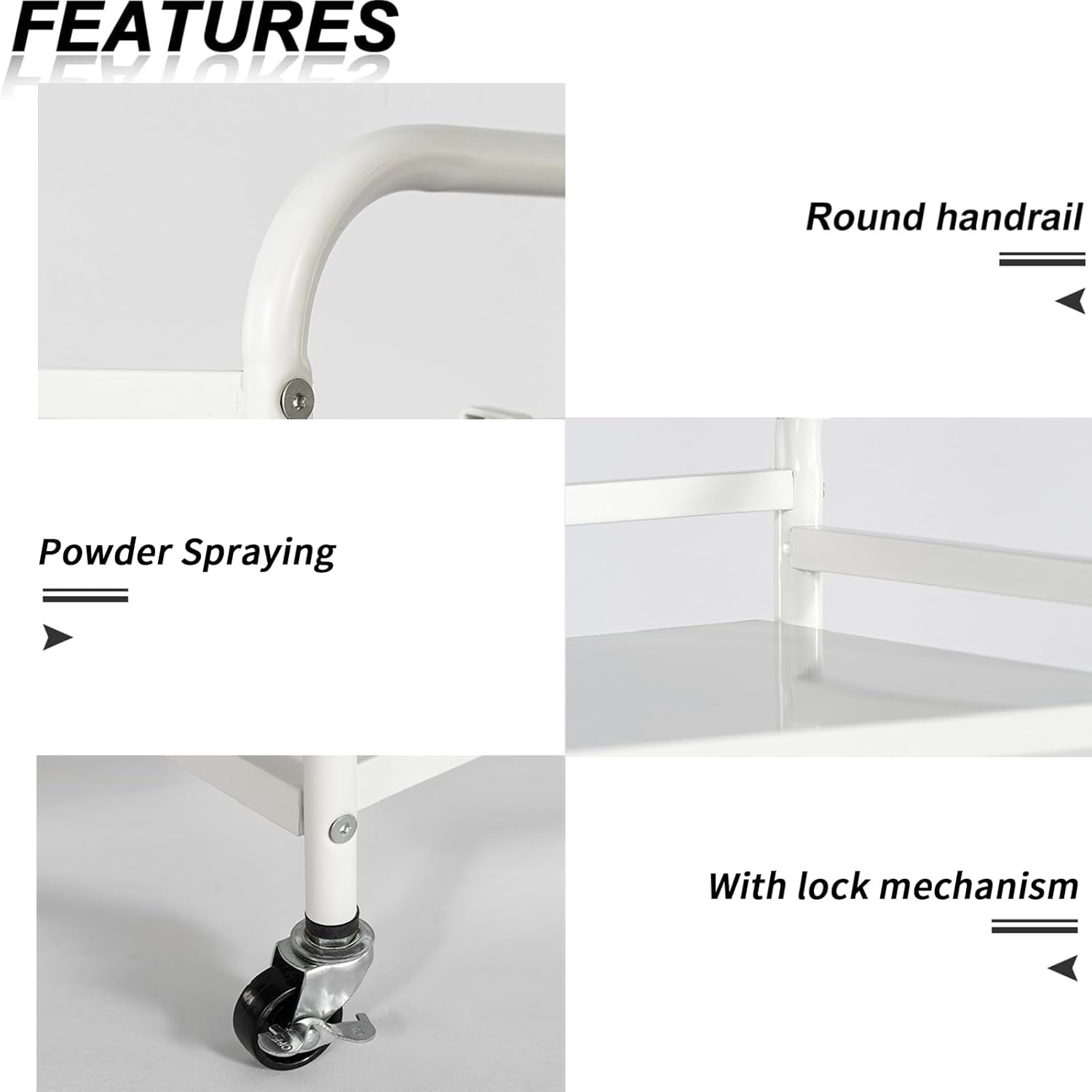 - 【sturdy Material】This 3-tier rolling cart is made of high-quality carbon steel. Each layer of the rolling car can carry 40 pounds. It is coated with electrostatic powder spraying technology, which is waterproof, moisture-proof, rust resistant and fadeless.