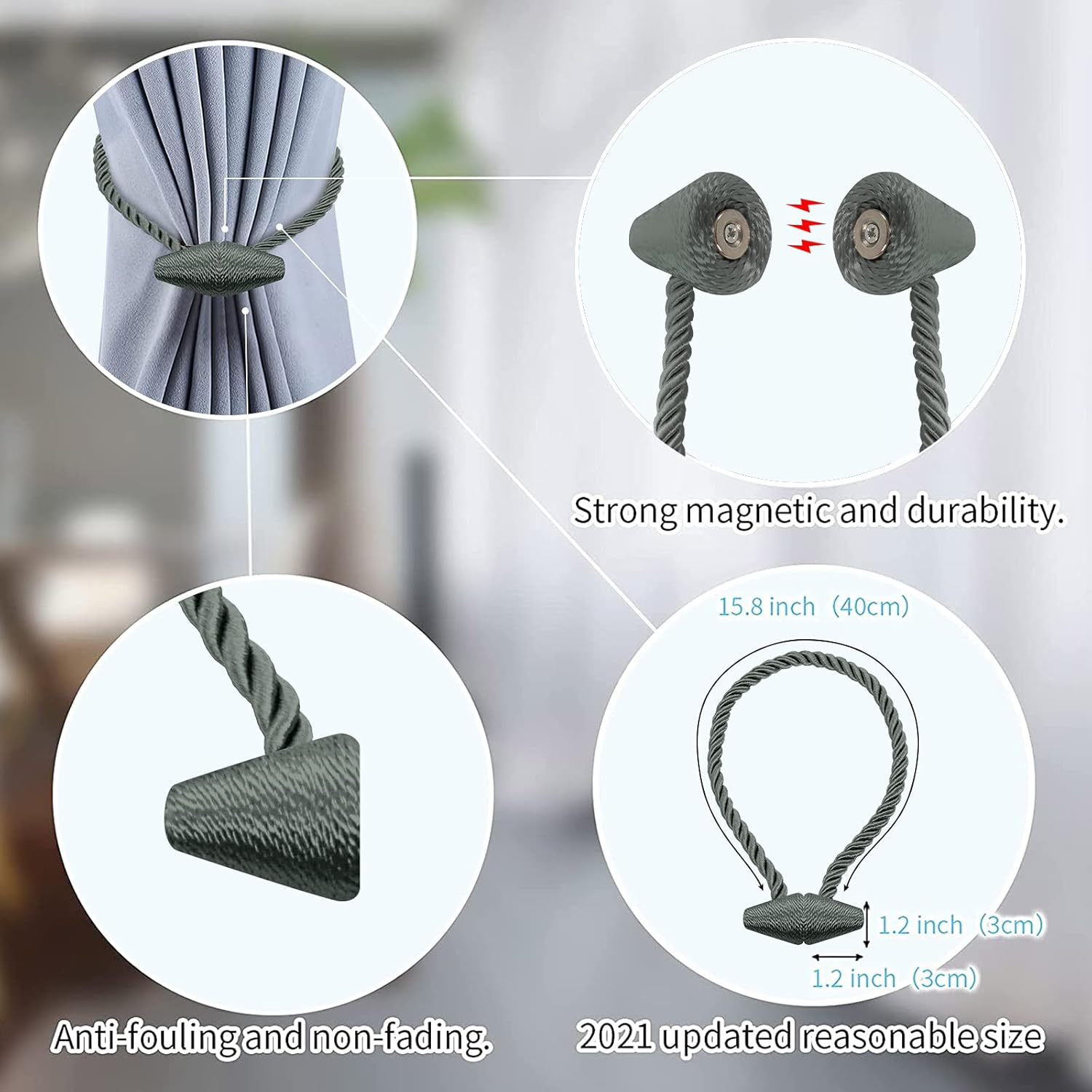 • [Upgrade Powerful Magnetic] Our magnetic curtain tiebacks magnets use high-end new imported nickel-plated magnets, with strong corrosion resistance and durability, more magnetic than ordinary magnetic curtain tiebacks, and do not rust and not lose color. The rope of curtain tie adopts upgrade thickened solid polyester yarn, which is not only durable, but also not easy to wear or pilling.