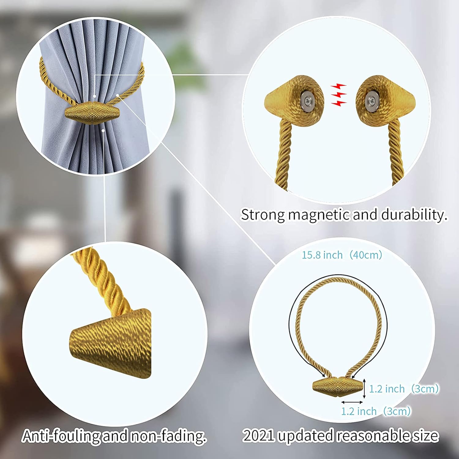 • [Upgrade Powerful Magnetic] Our magnetic curtain tiebacks magnets use high-end new imported nickel-plated magnets, with strong corrosion resistance and durability, more magnetic than ordinary magnetic curtain tiebacks, and do not rust and not lose color. The rope of curtain tie adopts upgrade thickened solid polyester yarn, which is not only durable, but also not easy to wear or pilling.