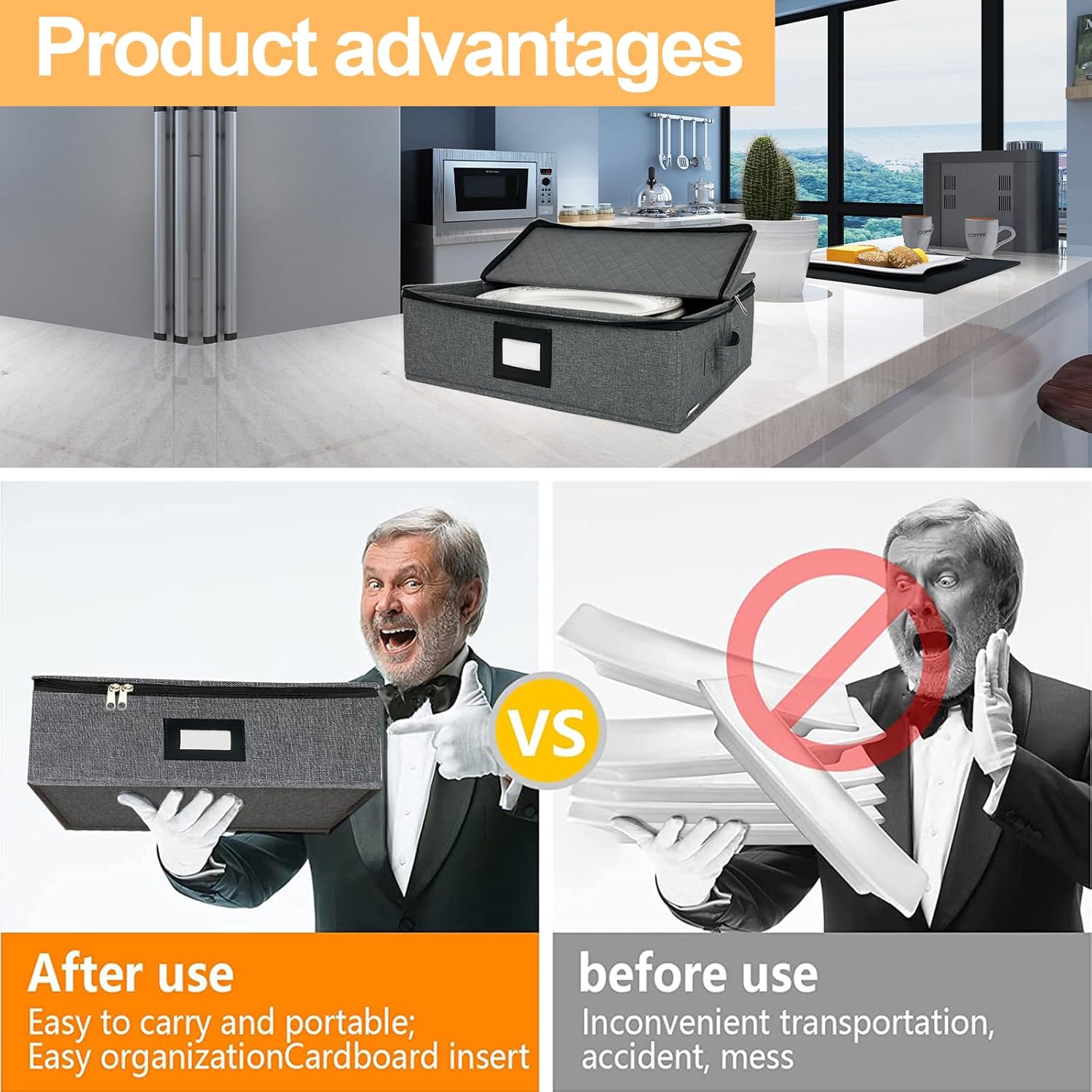 • 🐟Perfect design: The plate storage container can hold four platters, size 17*13*5.3 inch. 4 large felt dividers are included to help keep serving platters from bumping into each other.